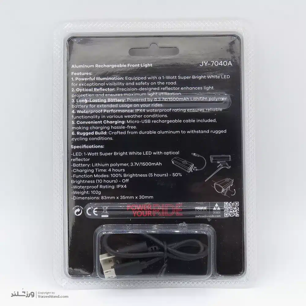 قدرت نور این مدل بسیار بالا بوده و مسیر پیشرو را با دقت و وضوح روشن میکند. همچنین وجود حالتهای مختلف نوردهی از جمله نور ثابت قوی، نور کم، و چشمکزن به شما این امکان را میدهد که در شرایط مختلف نوری و جادهای، گزینه مناسب را انتخاب کنید. این ویژگیها باعث افزایش ایمنی در هنگام دوچرخهسواری در شب میشود.