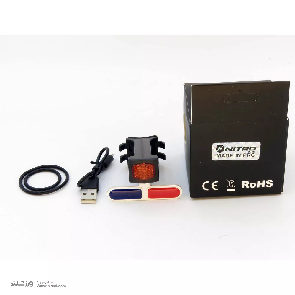چراغ عقب پلیسی دوکاره نیترو کد 1413 با نور ثابت و چشمکزن، بدنه مقاوم و باتری شارژی USB، ایمنی دوچرخهسواران را در شب افزایش میدهد. خرید از فروشگاه ورزشلند.