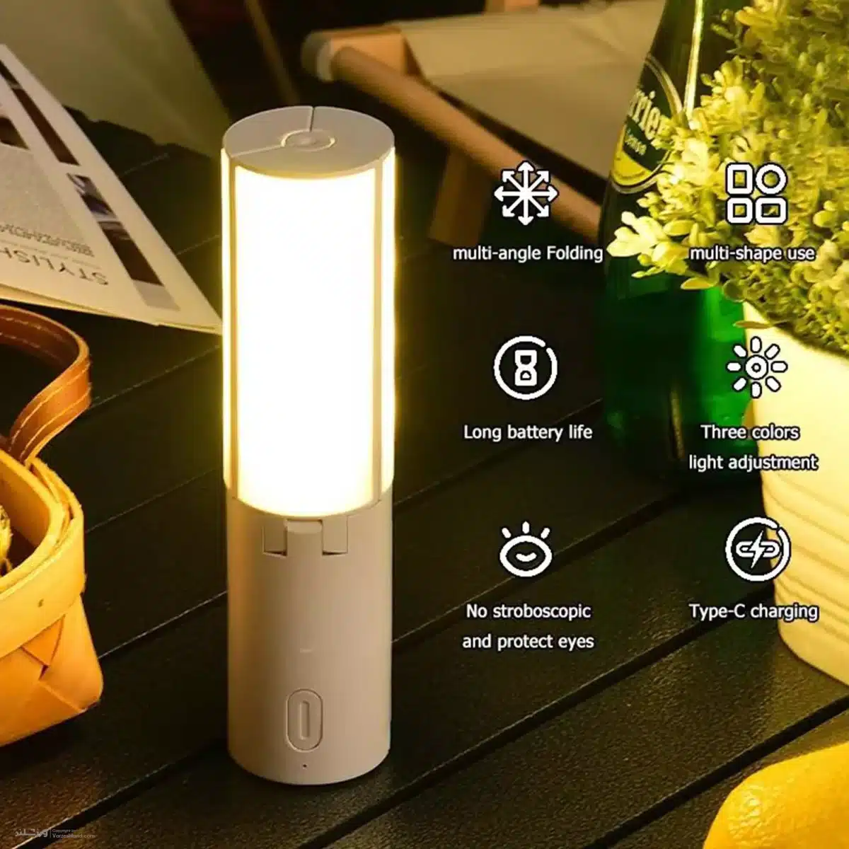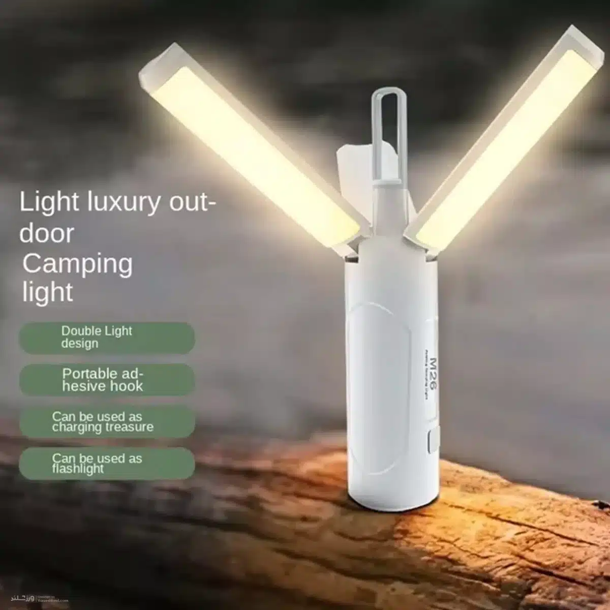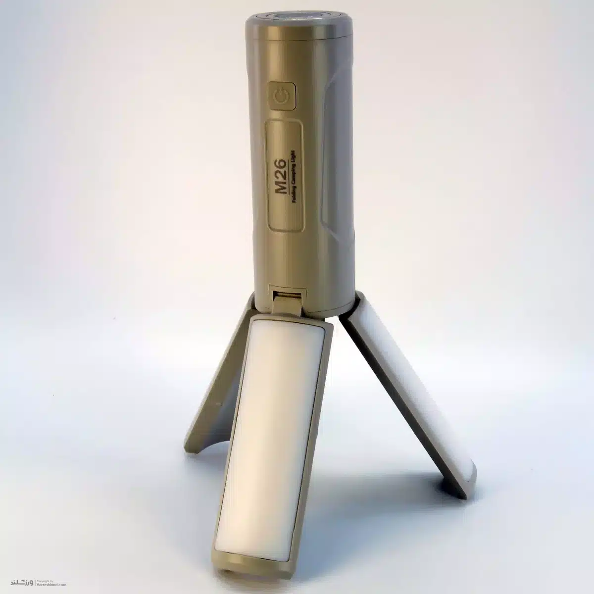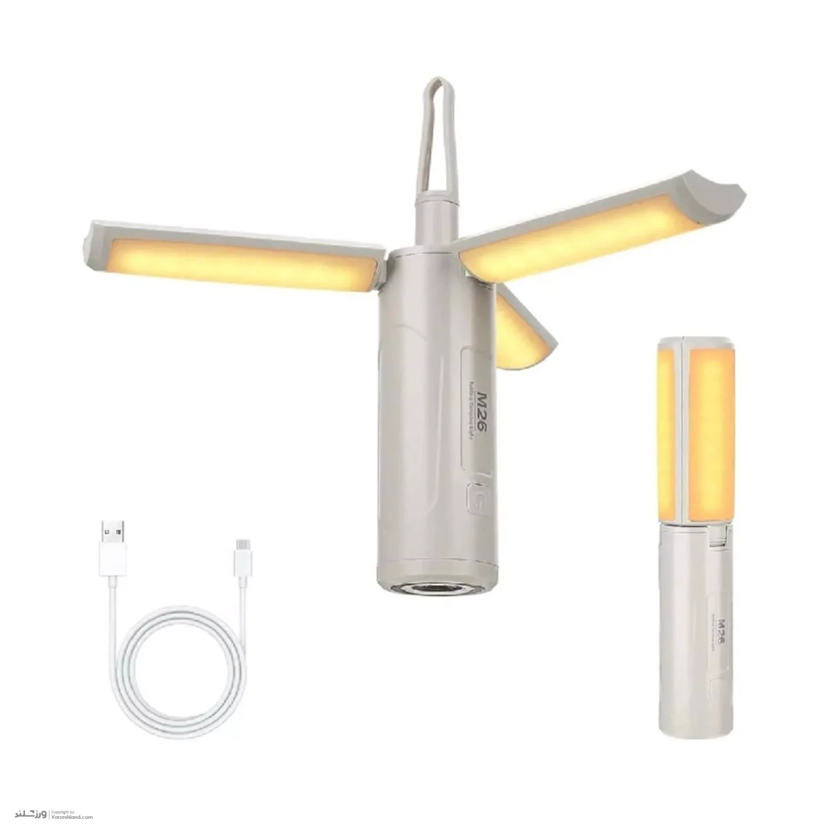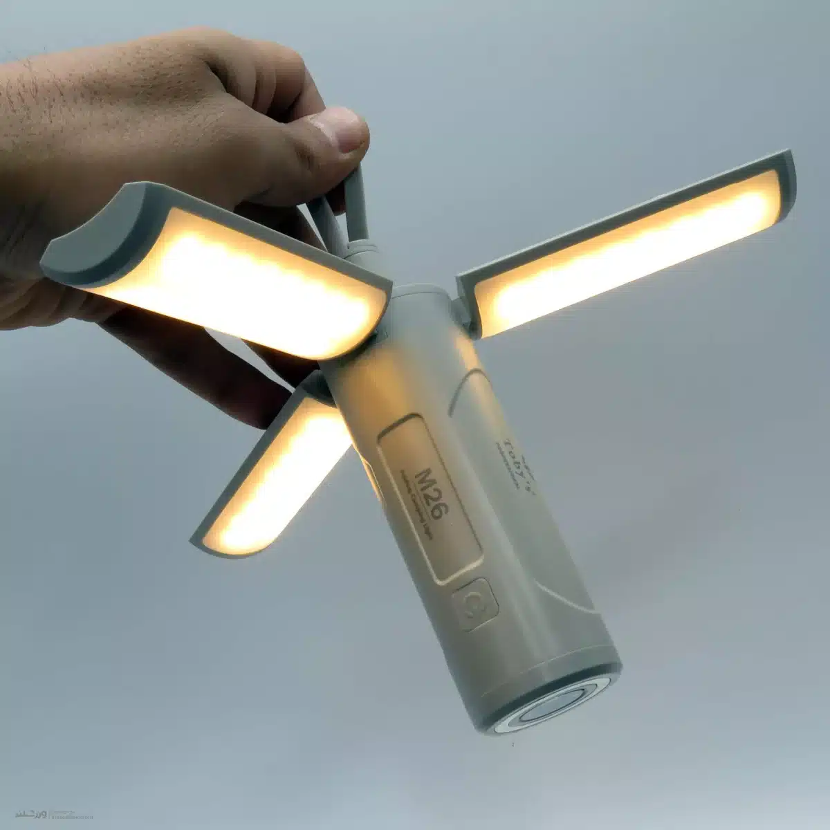 ویژگی بارز این چراغ، بازوهای تاشو و نوردهی ۳ جهته است که پس از باز شدن، نوری بسیار گسترده و یکنواخت در محیط پخش میکند. طراحی نوآورانه بازوهای LED باعث میشود تا بهراحتی زاویه نور را تنظیم کرده و محیط اطراف را به دلخواه روشن کنید. وقتی بازوها جمع میشوند، چراغ حالت دستی و متمرکز پیدا میکند و میتوان از آن بهعنوان چراغ قوه یا چراغ مطالعه نیز استفاده کرد.