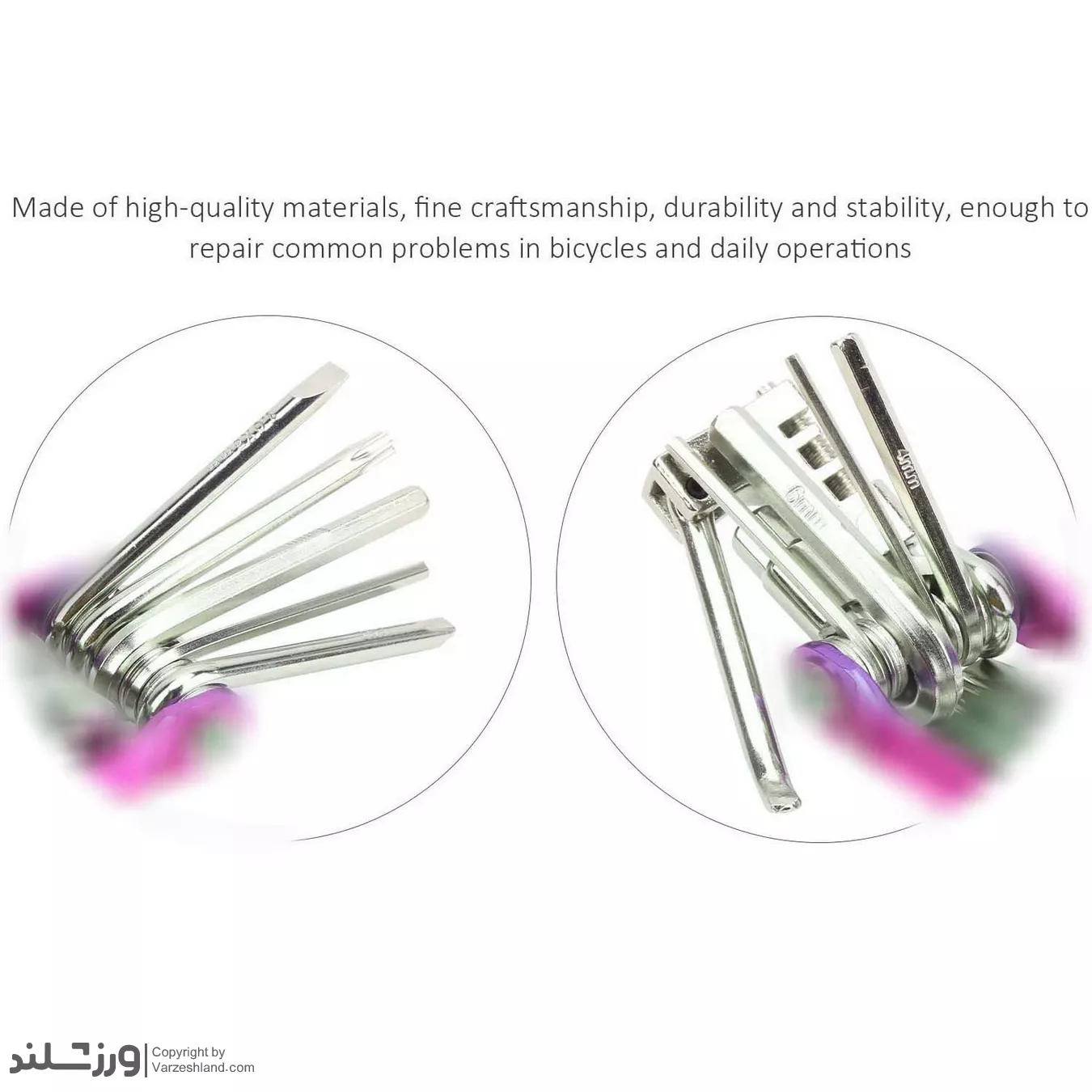 این محصول یک ابزار دستی چندکاره جمع و جور است که مجموعه ای از سری های آچار آلن در سایزهای مختلف به علاوه سری های پیچ گوشتی و ابزارهای کمکی را در یک قاب تاشو فراهم میکند. طراحی تاشو باعث می شود ابزارها منظم، محافظت شده و حمل و نقل آن راحت باشد. این ابزار برای کاربردهای خانگی، تعمیر دوچرخه، ابزارآلات سبک و استفاده فنی روزمره مناسب است.
