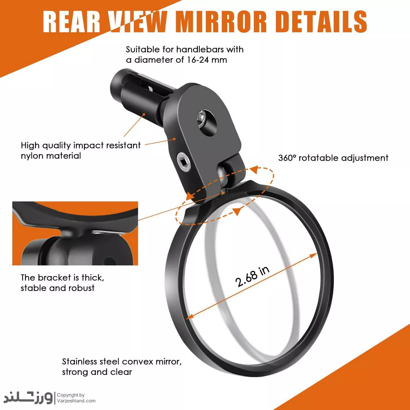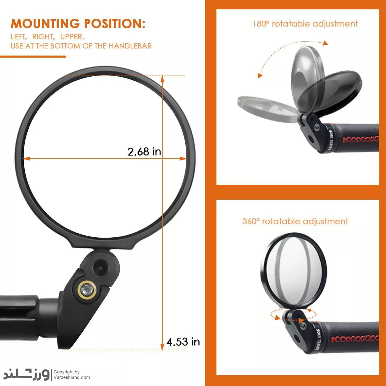 کاربرد: افزایش دید عقب هنگام دوچرخه سواری، ایمنی بیشتر در ترافیک یا مسیرهای شهری