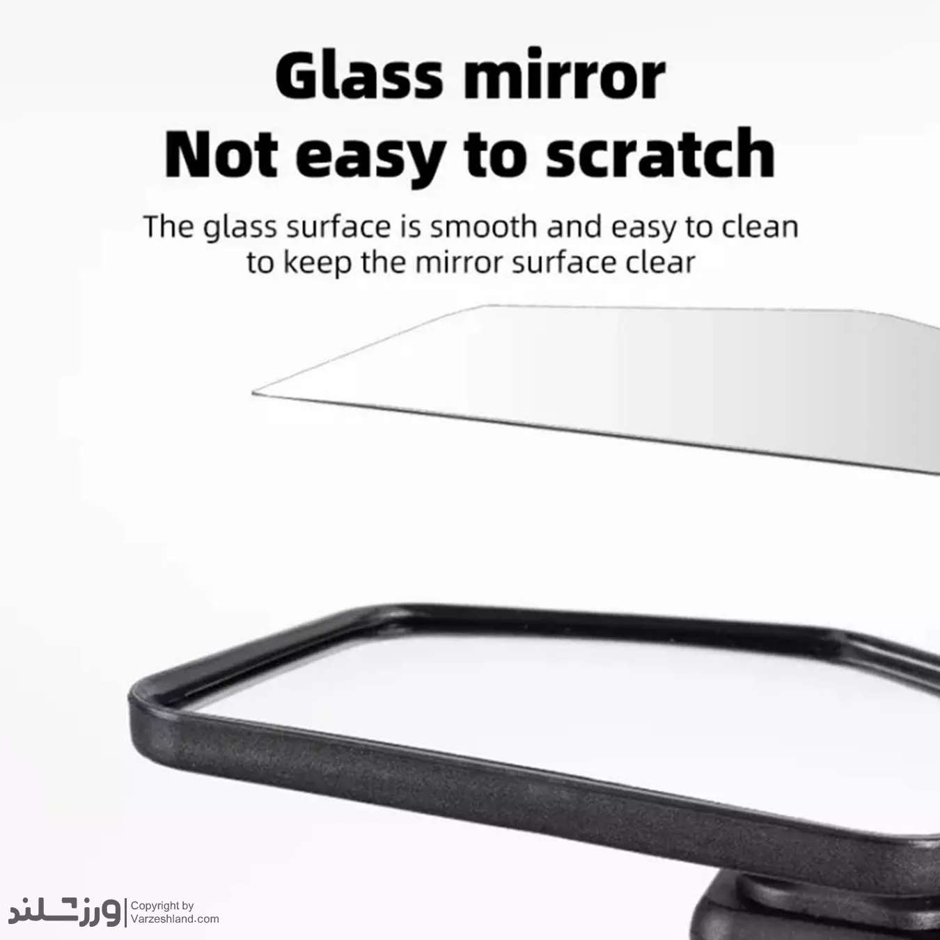 آینه از نوع شیشه/آکریلیک با کیفیت بالا ساخته شده که تصویری واضح و با حداقل اعوجاج ارائه می دهد تا بتوانی ماشین ها، دوچرخه سواران و موانع پشت سر را راحت ببینی.