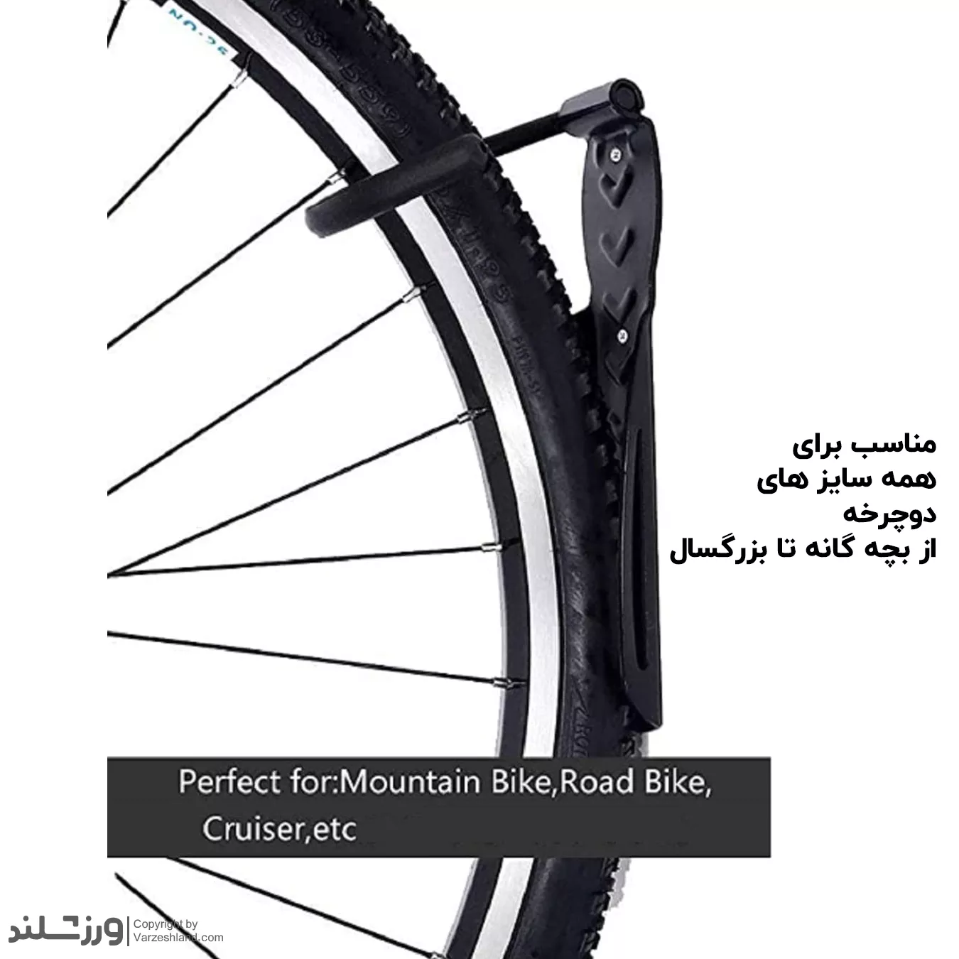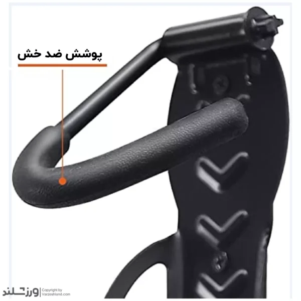 یکی از نکات برجسته این مدل، طراحی ارگونومیک آن است. بخش جلویی استند دیواری به قلاب لاستیکی ضد لغزش مجهز شده تا تایر جلو بهصورت ثابت و ایمن در جای خود قرار گیرد و هیچ آسیبی به رینگ یا دیواره لاستیک وارد نشود. همچنین فرم بدنه به گونهای طراحی شده که تماس سطحی تایر با فلز را به حداقل میرساند و مانع از خط افتادن روی دوچرخه میشود.