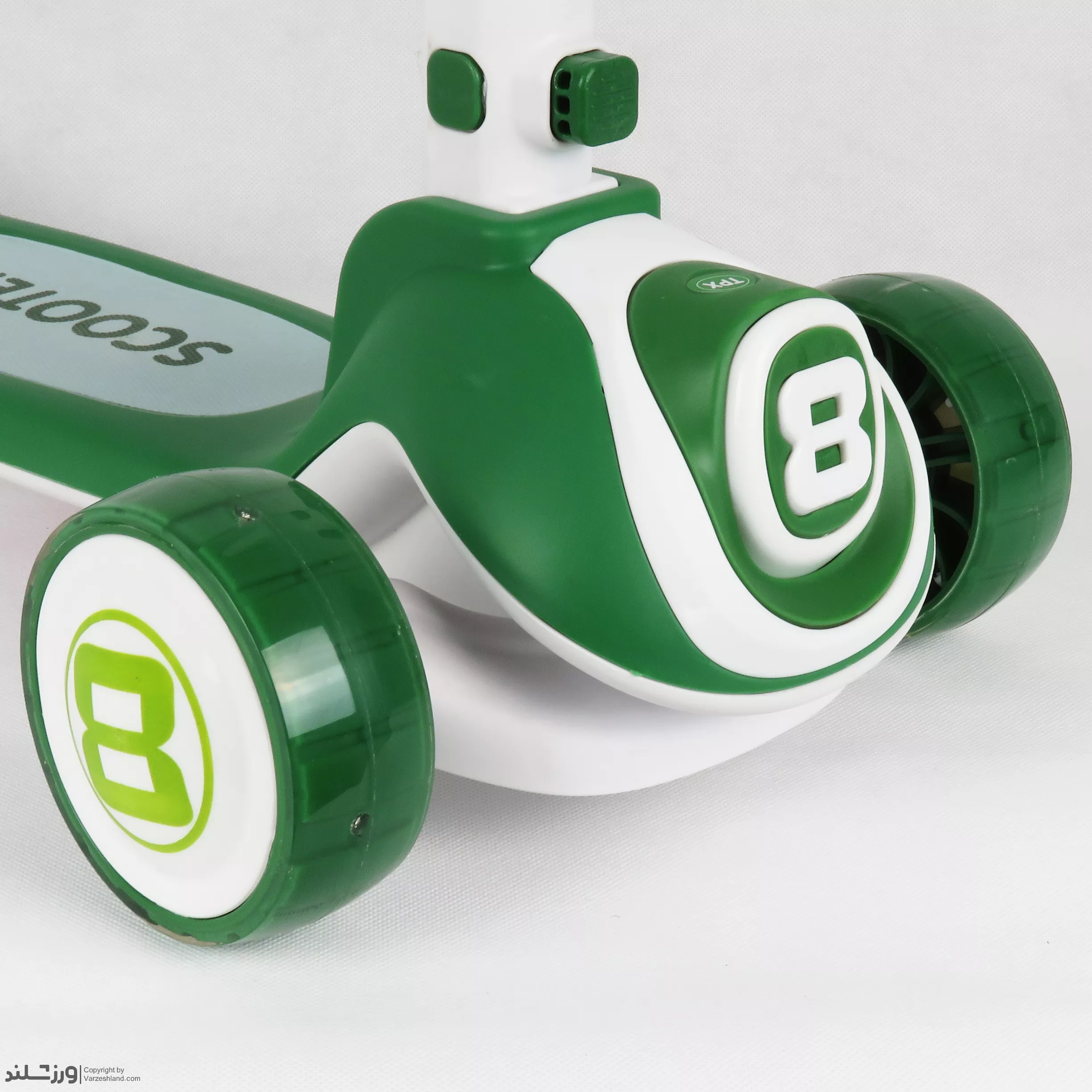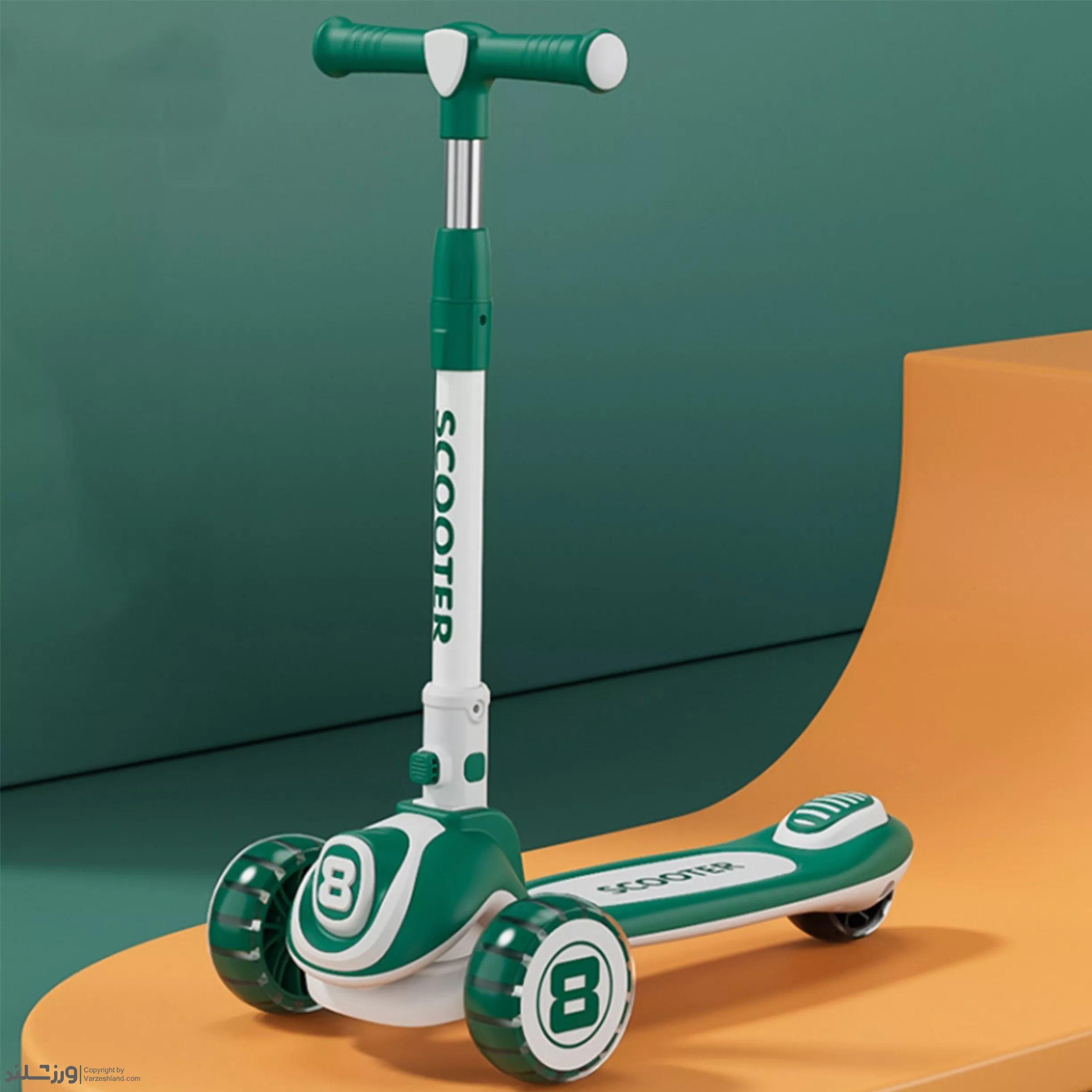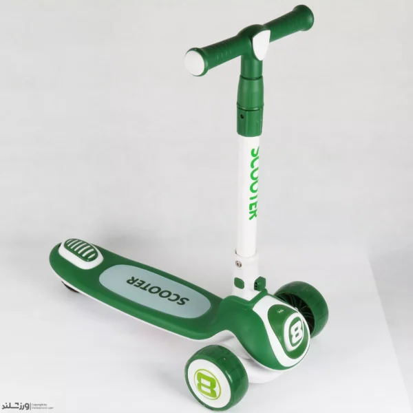 اسکوتر باراباس موزیکال کد ۱۸۸۶ سبز برای کودکان، دسته تاشو و تنظیم ارتفاع تا سه مرحله – تحرک، شادی و ایمنی در ورزشلند