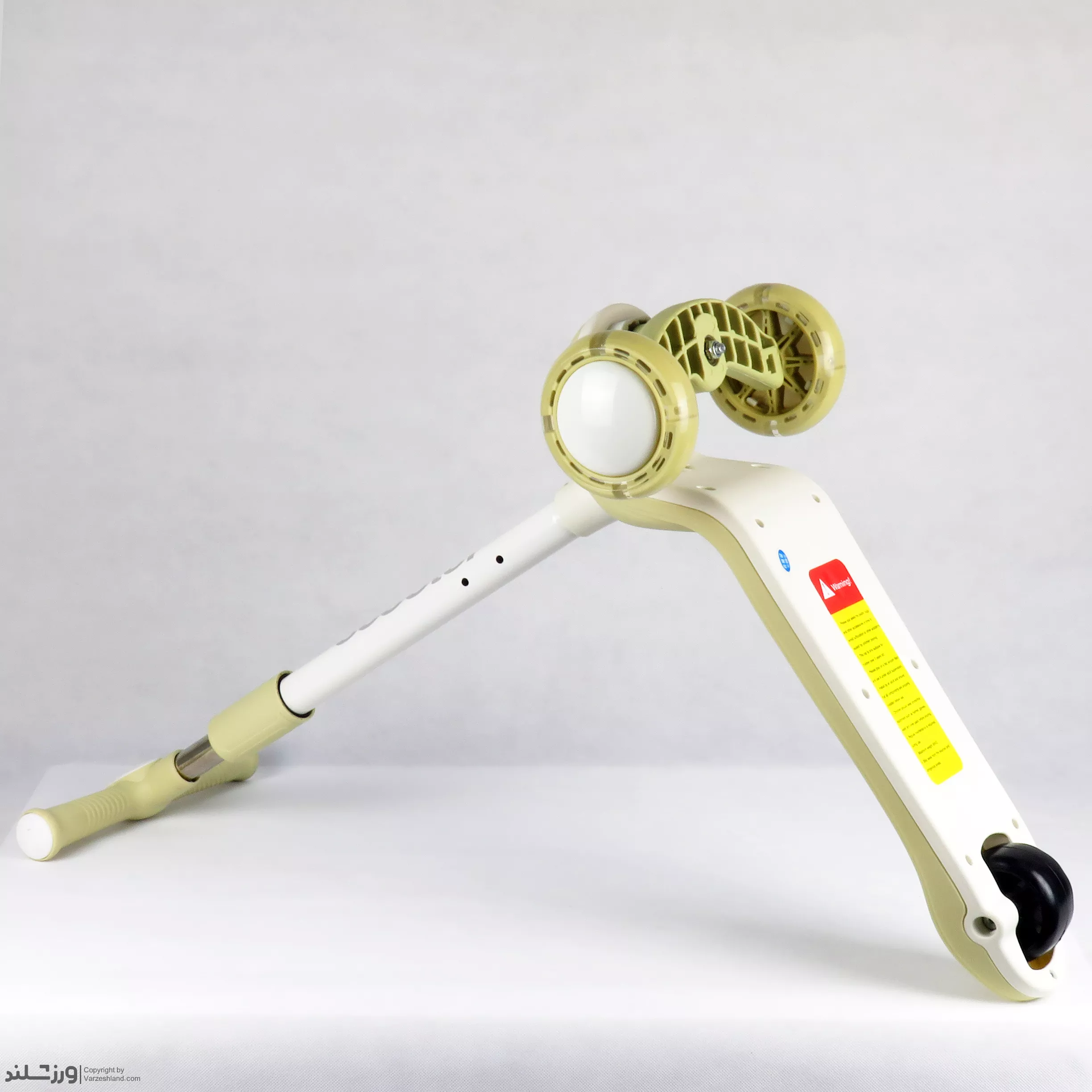این مدل دارای قابلیت تنظیم ارتفاع در سه سطح است و میتوان فرمان را متناسب با رشد کودک تنظیم کرد. فرمان دارای دستگیرههای نرم و ضدلغزش از جنس سیلیکون است که کنترل آسانتری را فراهم میکند. علاوه بر این، دسته تاشو موجب میشود حمل و نگهداری اسکوتر بسیار راحت باشد.