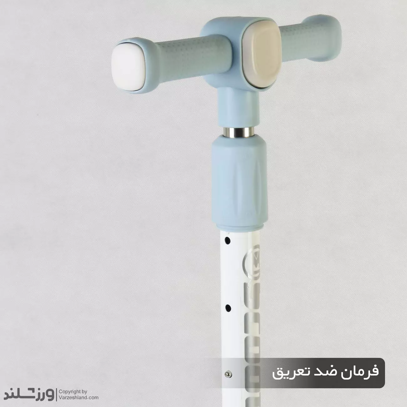 ارتفاع فرمان این مدل، قابلیت تنظیم در سه حالت مختلف را دارد؛ بنابراین اسکوتر همراه کودک رشد میکند و در طول چند سال قابل استفاده خواهد بود. دستههای نرم و ضدتعریق نیز در بازیهای طولانیمدت باعث ایجاد خستگی نمیشوند. علاوه بر آن، وجود پیچ فیکس فرمان موجب استحکام بیشتر اتصال و جلوگیری از لقزدن قسمت هدایتکننده اسکوتر میشود.