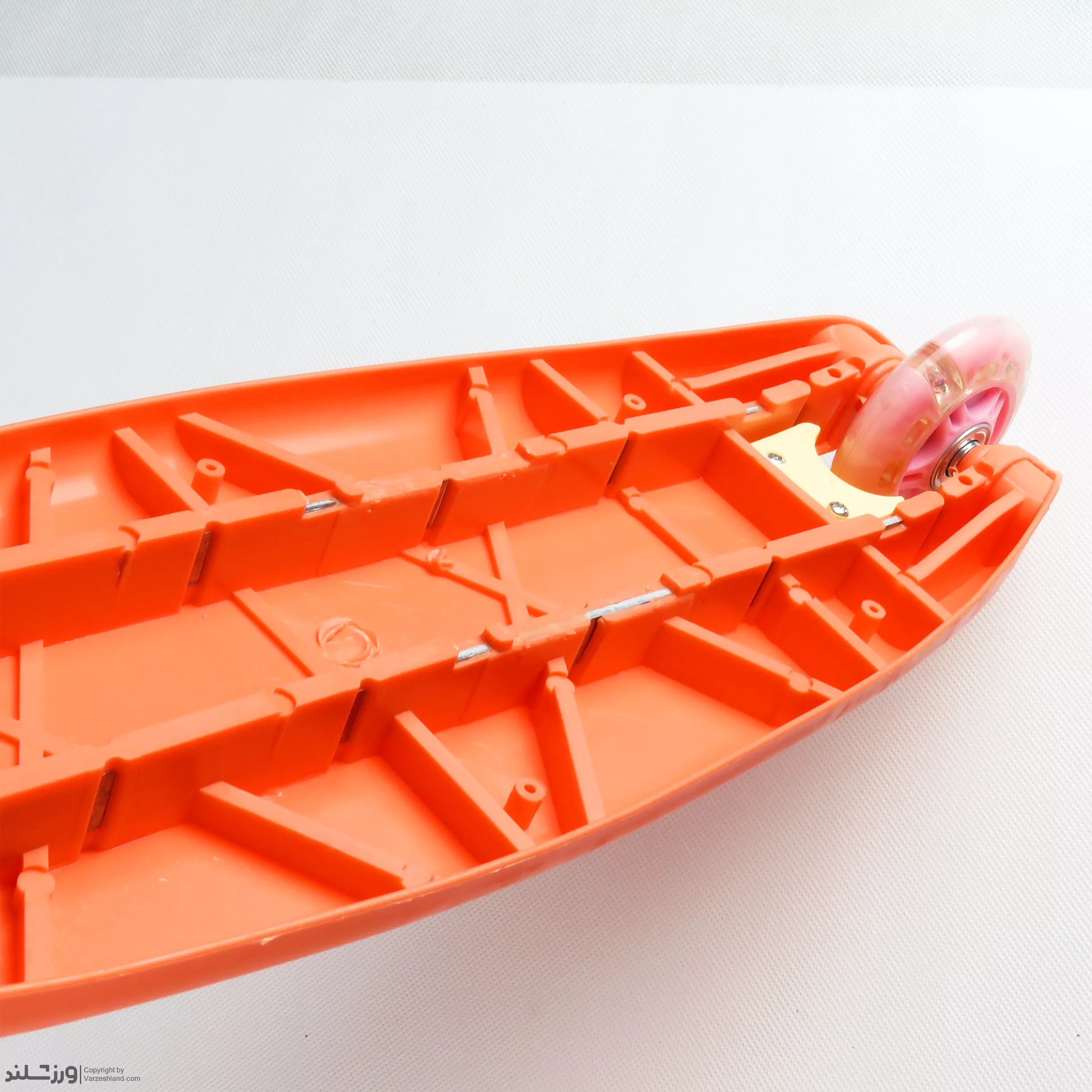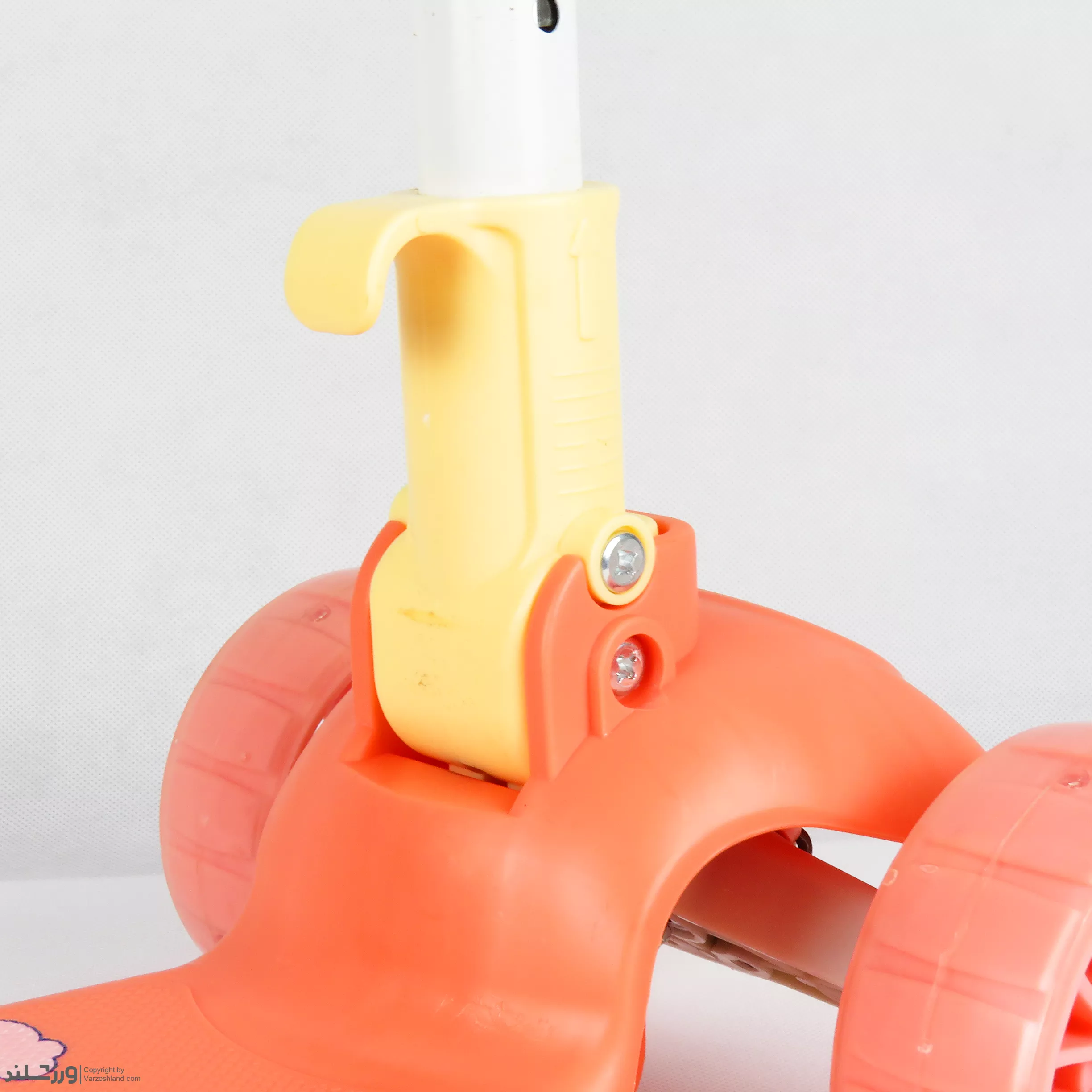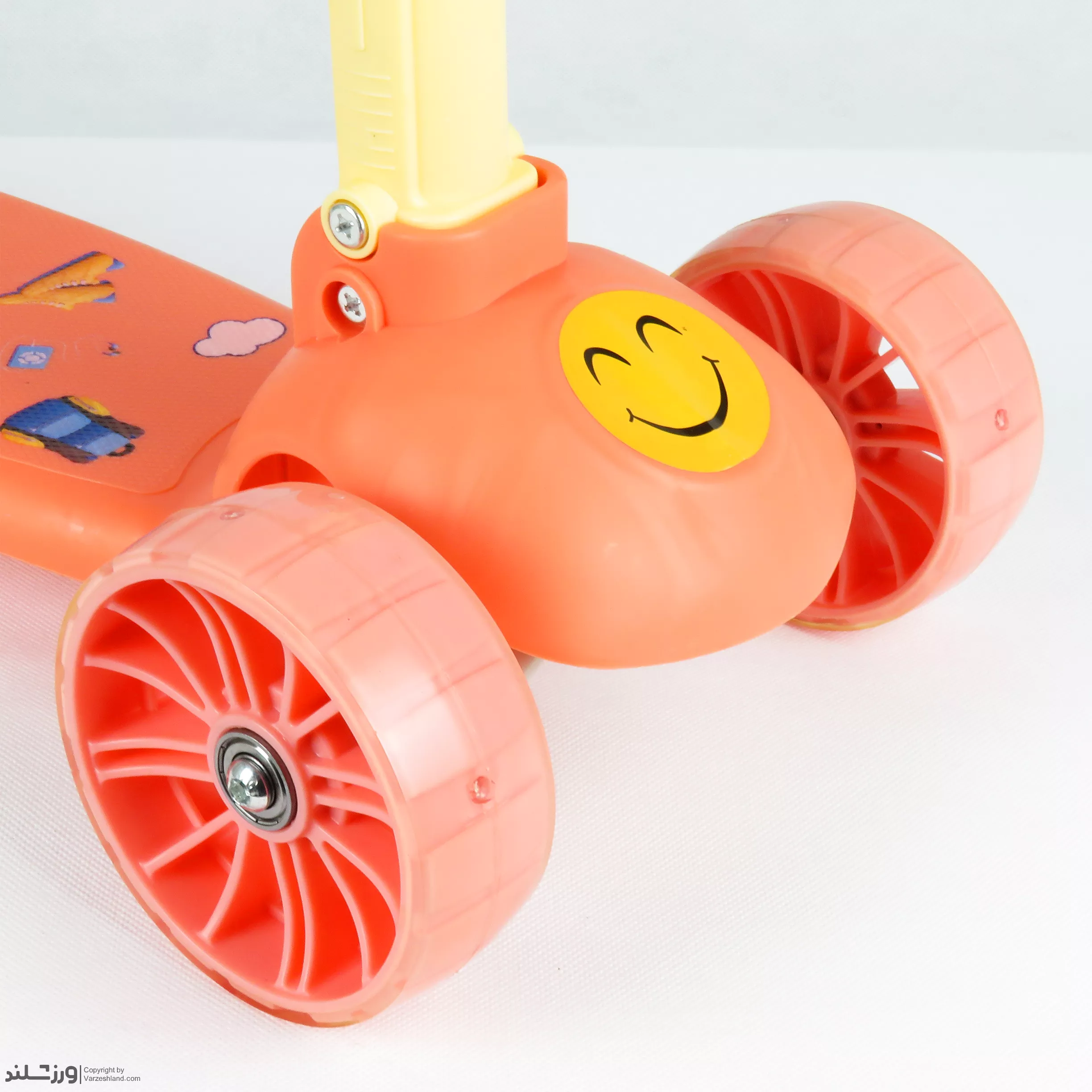 طراحی این اسکوتر فانتزی به صورت سه چرخ انجام شده است؛ یعنی دارای دو چرخ مقاوم و بزرگ در جلو و یک چرخ در عقب است که تعادل بسیار خوبی را برای کودک فراهم میکند. این ویژگی باعث می شود کودکان با کمترین سطح مهارت حرکتی بتوانند بدون نگرانی از افتادن از اسکوتر استفاده کنند. همچنین چرخ های جلویی مجهز به چراغ LED هستند که با حرکت فعال شده و نور رنگی و جذاب ایجاد می کنند. این نور علاوه بر زیبایی و هیجان، باعث افزایش ایمنی در محیط های کم نور نیز میشود.