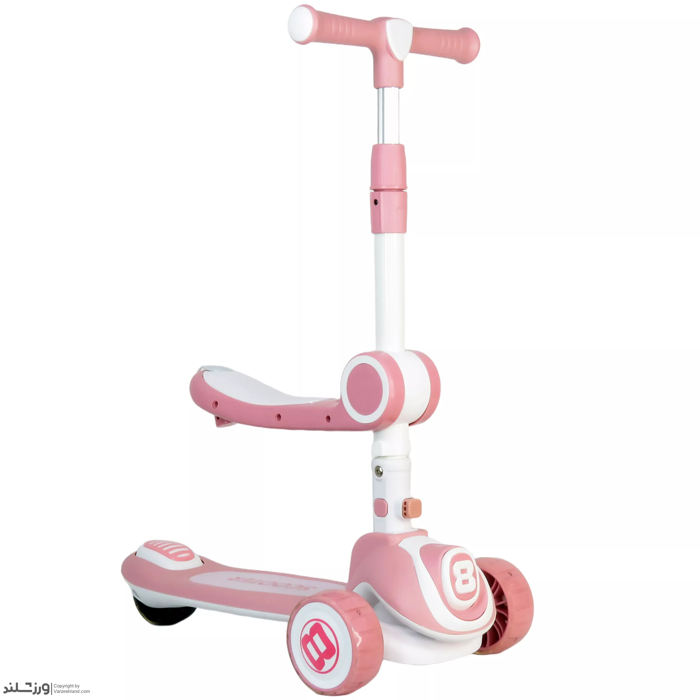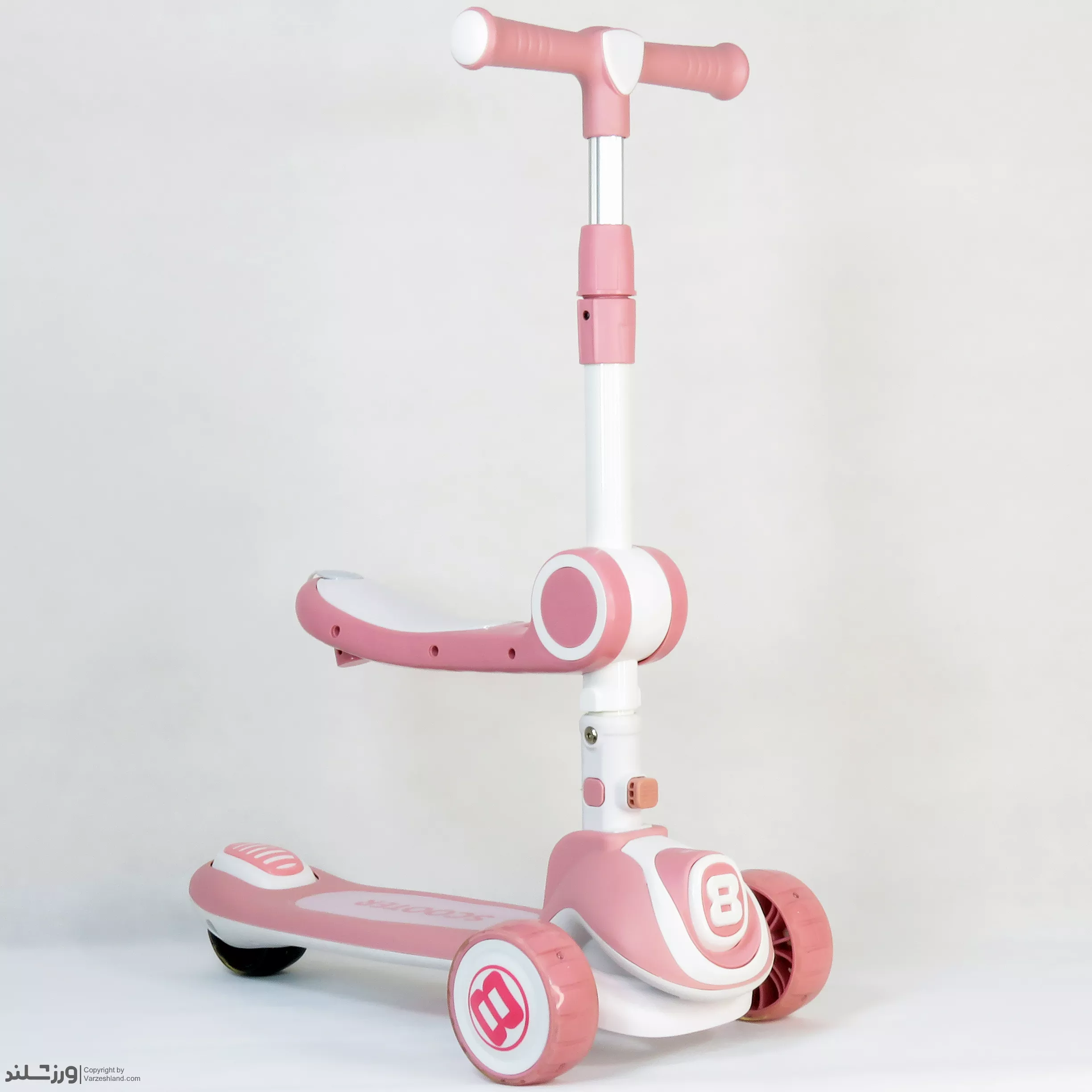 اسکوتر موزیکال صندلی دار باراباس کد ۱۸۹۴ صورتی، سه‌ چرخ صندلی‌ دار و قابل تبدیل با چرخ‌ های LED، موزیکال و فرمان 3 حالته. مناسب سن 2 تا 8 سال با صندلی جدا شونده، دسته تاشو و ترمز پدالی. اسکوتر صندلی دار برای یادگیری تعادل و سرگرمی ایمن کودکان طراحی شده و ارسال سریع از فروشگاه ورزشلند دارد.