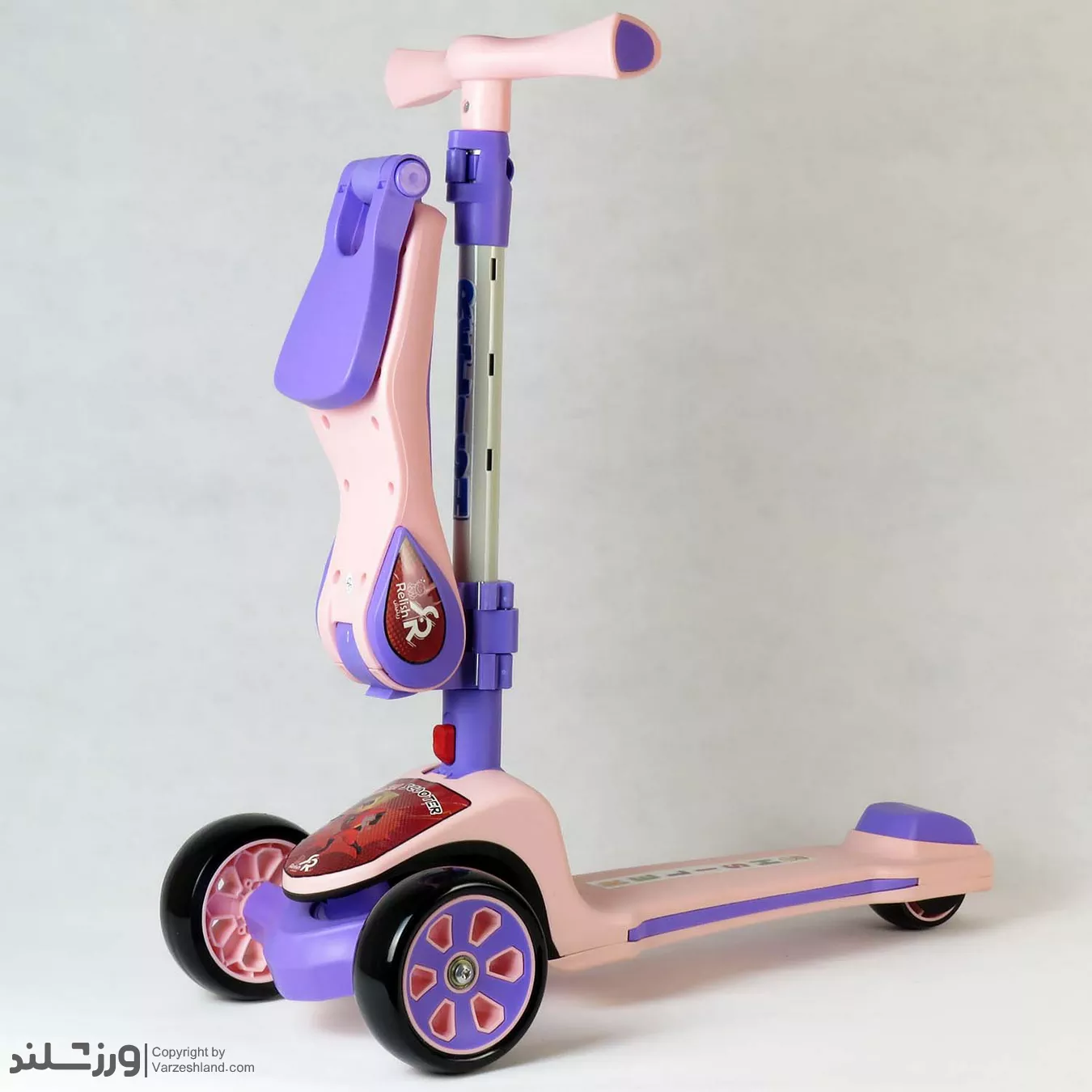 اسکوتر موزیکال صندلی دار SparkViolet کد 1934، انتخابی ایده آل برای کودکانی است که عاشق رنگ های گرم، پرانرژی و دخترانه هستند. این مدل با ترکیب صورتی پررنگ و جزئیات بنفش طراحی شده تا ظاهری جذاب و پر احساس ایجاد کند. بدنه ی این اسکوتر از پلاستیک فشرده ی دو جداره ساخته شده و میتواند وزن ۶۰ کیلوگرم را تحمل کند، در حالی که صندلی تاشو تا ۲۵ کیلوگرم ظرفیت دارد.