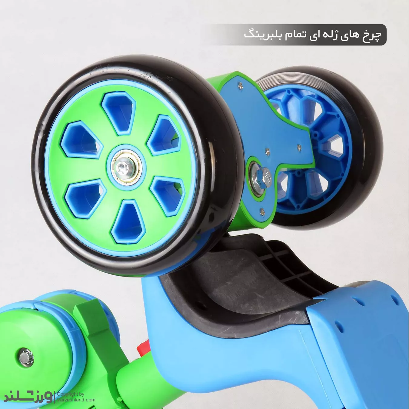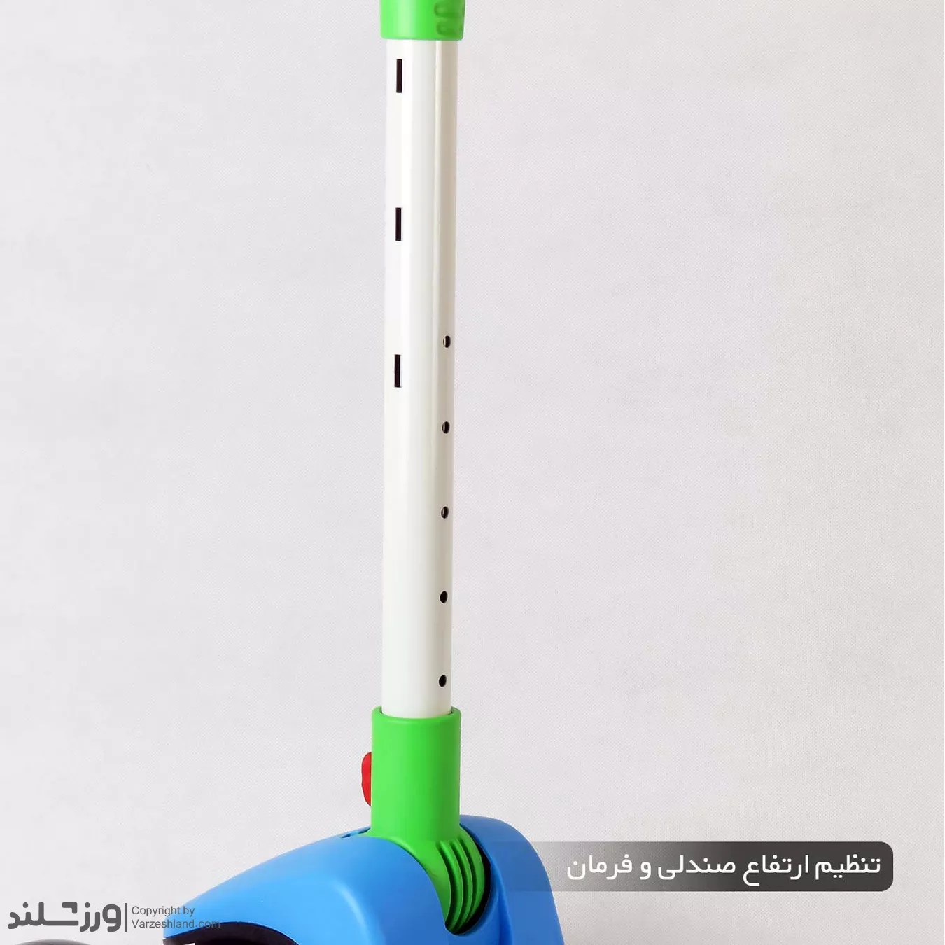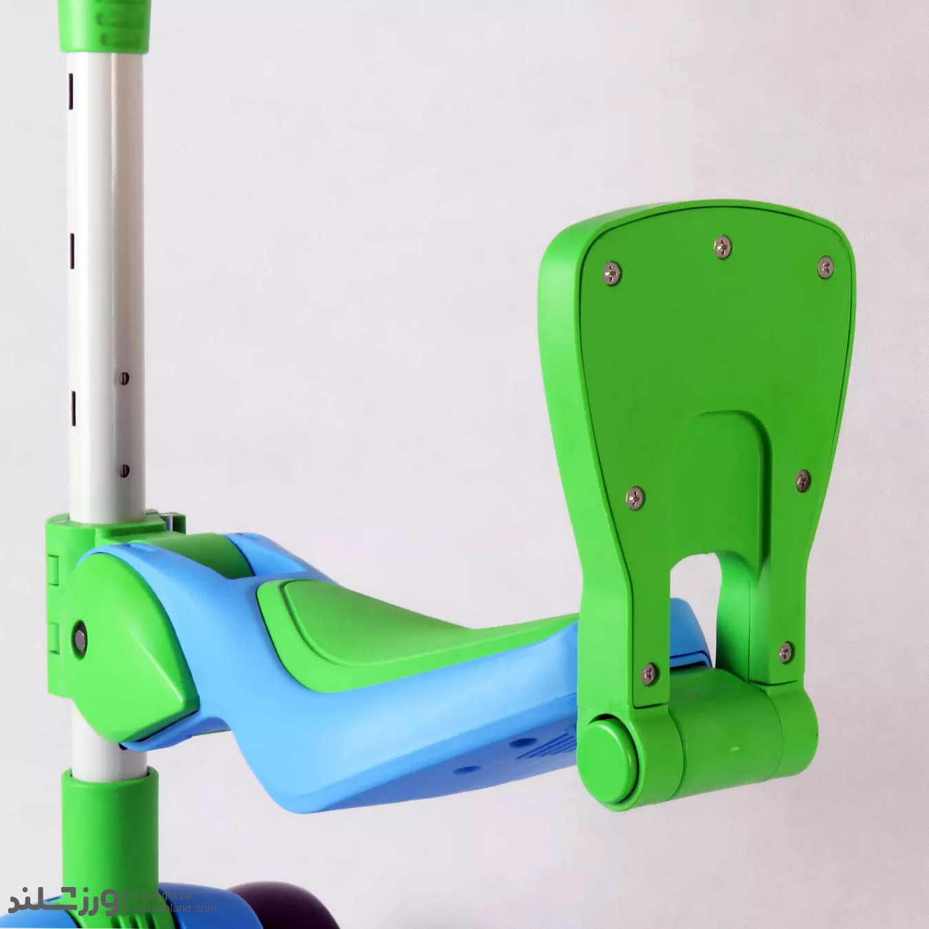 اسکوتر موزیکال صندلی دار Thunder کد 1934، یکی از پرطرفدارترین محصولات بازار برای والدینی است که بهدنبال یک اسکوتر کاملاً ایمن، باکیفیت و چندمنظوره برای فرزند خود هستند. این مدل با طراحی جذاب آبی و جزئیات سبز، ظاهری شاد و کودکانه دارد و میتواند کودک را از همان نگاه اول مجذوب کند. علاوه بر زیبایی، ساختار این اسکوتر با استفاده از پلاستیک فشرده دو جداره ساخته شده و همین موضوع باعث شده است که بدنه آن علاوه بر وزن کم، مقاومت بسیار بالایی داشته باشد و بتواند تا ۶۰ کیلوگرم در حالت ایستاده را تحمل کند. صندلی تاشوی این مدل نیز تا ۲۵ کیلوگرم ظرفیت دارد و برای کودکان کمسنتر مناسب است.