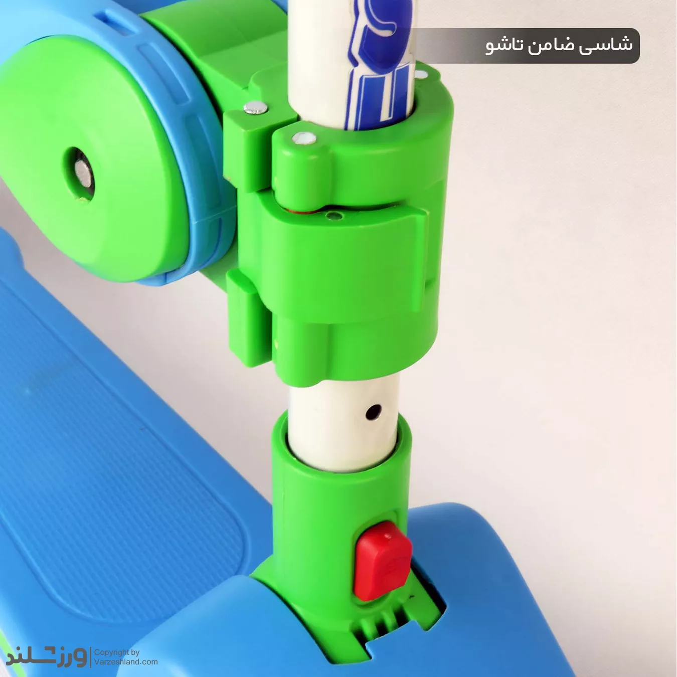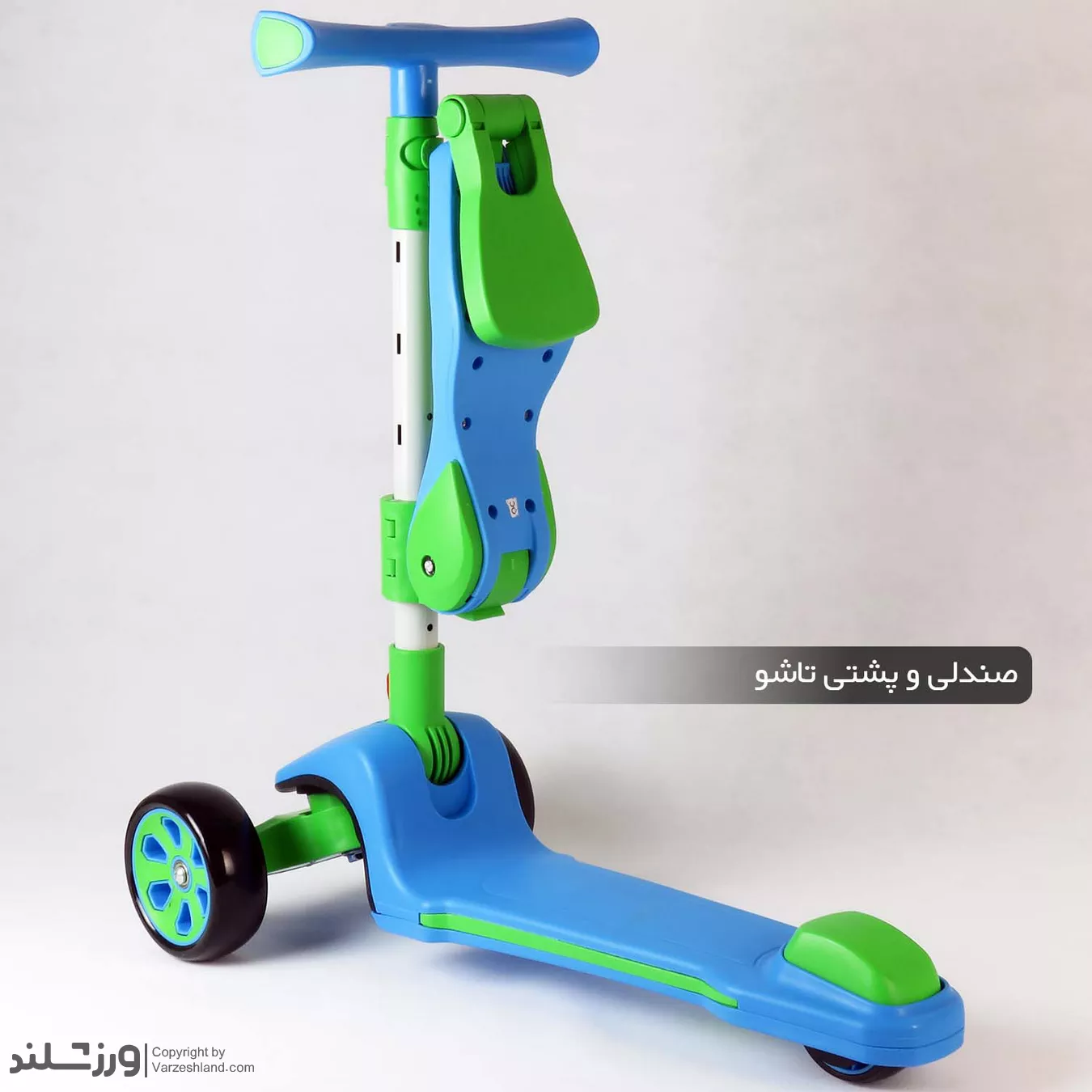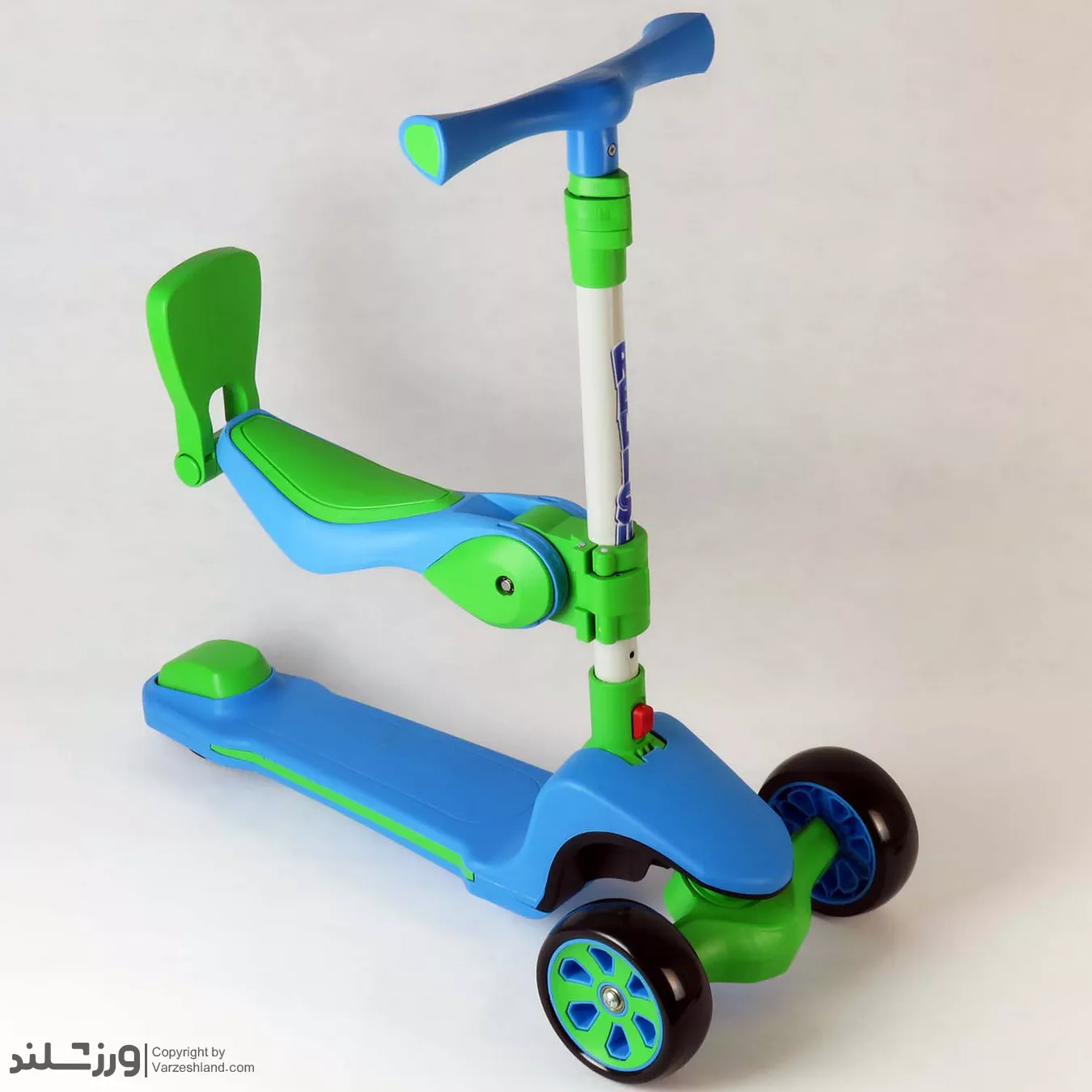 اسکوتر موزیکال صندلی دار Thunder کد 1934، یکی از پرطرفدارترین محصولات بازار برای والدینی است که بهدنبال یک اسکوتر کاملاً ایمن، باکیفیت و چندمنظوره برای فرزند خود هستند. این مدل با طراحی جذاب آبی و جزئیات سبز، ظاهری شاد و کودکانه دارد و میتواند کودک را از همان نگاه اول مجذوب کند. علاوه بر زیبایی، ساختار این اسکوتر با استفاده از پلاستیک فشرده دو جداره ساخته شده و همین موضوع باعث شده است که بدنه آن علاوه بر وزن کم، مقاومت بسیار بالایی داشته باشد و بتواند تا ۶۰ کیلوگرم در حالت ایستاده را تحمل کند. صندلی تاشوی این مدل نیز تا ۲۵ کیلوگرم ظرفیت دارد و برای کودکان کمسنتر مناسب است.