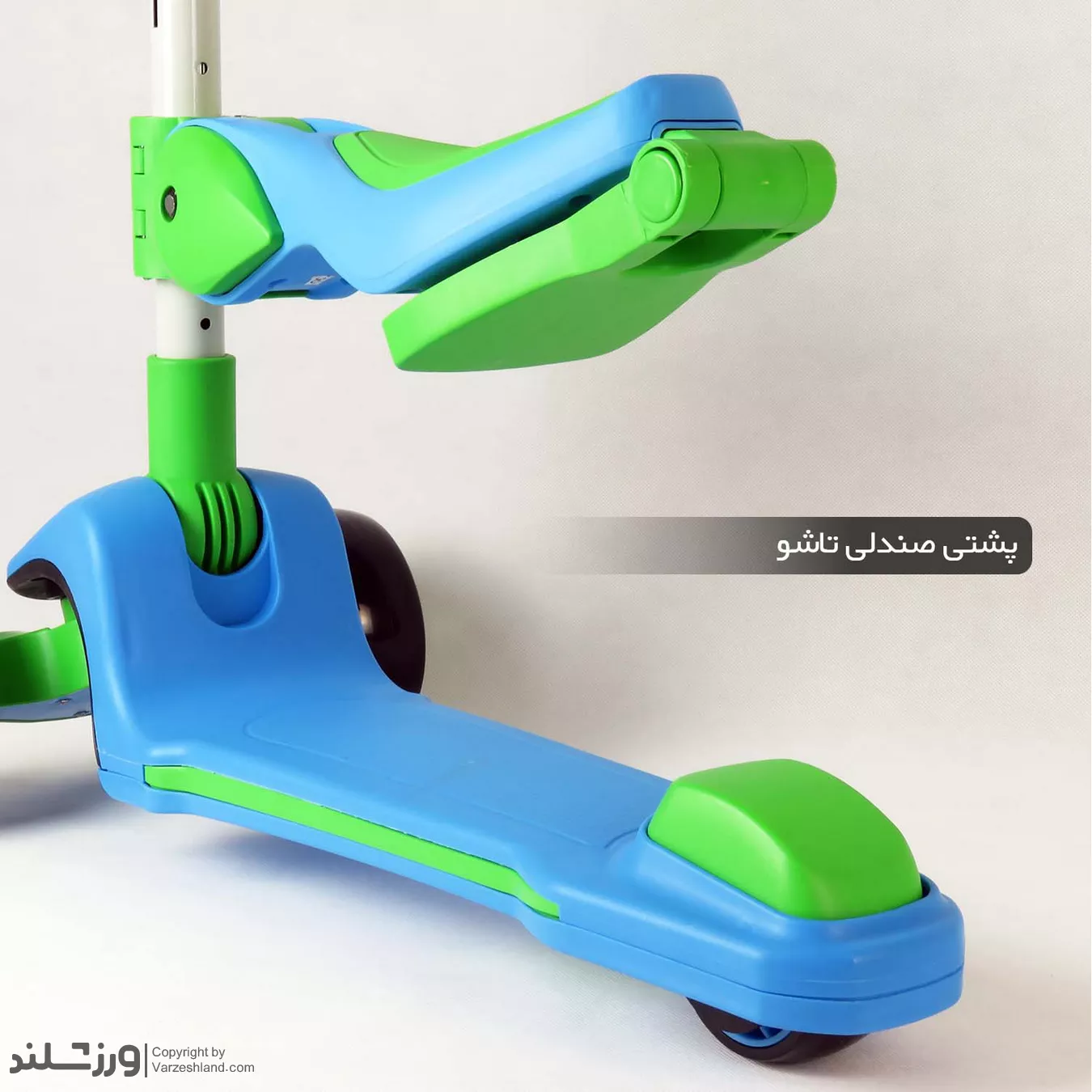وجود صندلی و پشتی تاشو از بزرگترین مزایای اسکوتر موزیکال صندلی دار Thunder است. کودک در سنین پایینتر میتواند روی صندلی بنشیند و با امنیت بیشتری حرکت کند و در سنین بالاتر صندلی را جمع کرده و در حالت ایستاده اسکوترسواری کند. این قابلیت باعث میشود اسکوتر کوپر مانند یک وسیله دوکاره عمل کند و ارزش خرید آن بسیار بالا برود.