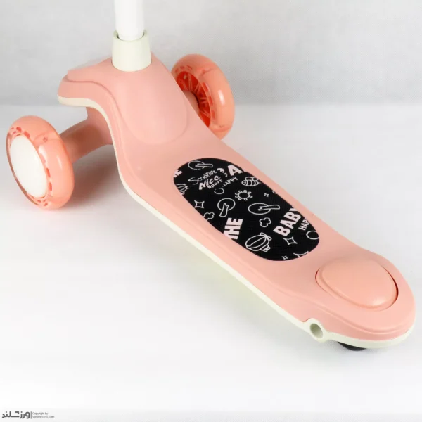 دستهی این مدل تاشو طراحی شده تا حمل و نگهداری آن سادهتر باشد. بهویژه برای خانوادههایی که دوست دارند اسکوتر فانتزی را به پارک یا سفر ببرند، این قابلیت بسیار کاربردی است. اسکوتر موزیکال فراری original کد ۱۸۹۰ صورتی تحمل وزن تا ۵۰ کیلوگرم را دارد و برای کودکان ۲ تا ۸ سال کاملاً مناسب است.
