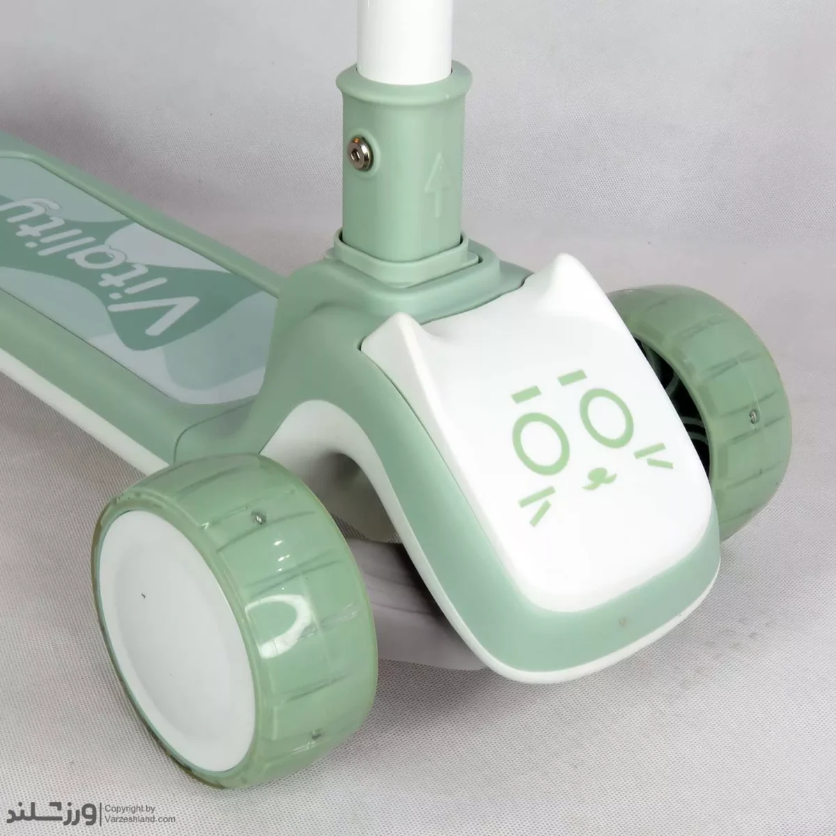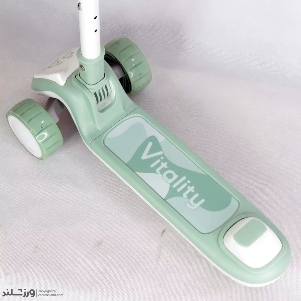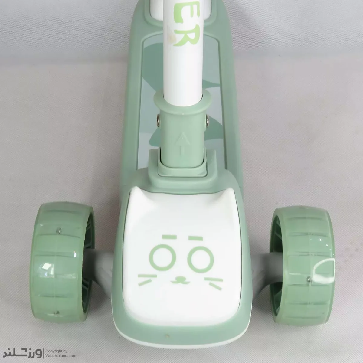 از نظر طراحی، این اسکوتر موزیکال دارای ظاهری کودک‌پسند با جزئیات بامزه است و به‌دلیل رنگ سبز پاستلی خود، انتخابی عالی برای والدینی است که به دنبال ترکیب زیبایی و کیفیت هستند. وزن سبک و ساختار مستحکم آن باعث می‌شود کودک بتواند به‌راحتی اسکوتر را جابه‌جا کند.