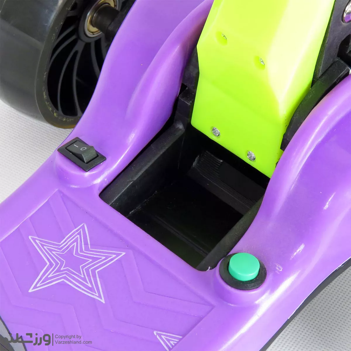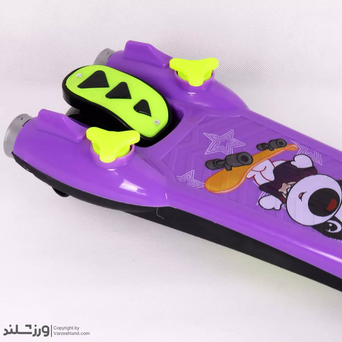 اسکوتر موزیکال Pupster Smoke کد 1952 در رنگ بنفش، یکی از فانتزیترین و جذابترین اسکوترهای کودکانه است که با ترکیبی از طراحی کارتونی، جلوه دودزا و امکانات سرگرمکننده، تجربهای کاملاً متفاوت و هیجانانگیز برای کودکان ایجاد میکند. این مدل بهواسطه رنگ بنفش چشمگیر و طرح زیبای سگ اسکیت سوار روی کفپایه، از همان نگاه اول کودک را مجذوب خود میکند. سطح اسکوتر موزیکال دارای خطوط برجسته و پوشش ضدلغزش است تا هنگام قرارگیری پا، امنیت کامل برقرار باشد.