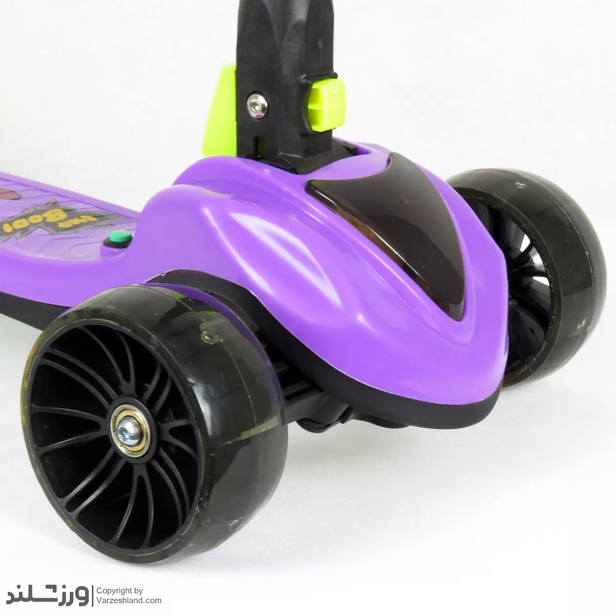 این مدل به پخش موزیک نیز مجهز است که با فشردن دکمه مخصوص فعال میشود. موزیکال بودن اسکوتر باعث میشود کودک در هنگام بازی انرژی بیشتری داشته باشد و تجربه او از حرکت، لذت بخش تر شود. همچنین فرمان اسکوتر قابلیت تنظیم ارتفاع در چهار حالت متفاوت را دارد تا متناسب با رشد قد کودک قابل استفاده باشد. این مزیت باعث افزایش طول عمر محصول و استفاده طولانی مدت از آن میشود.