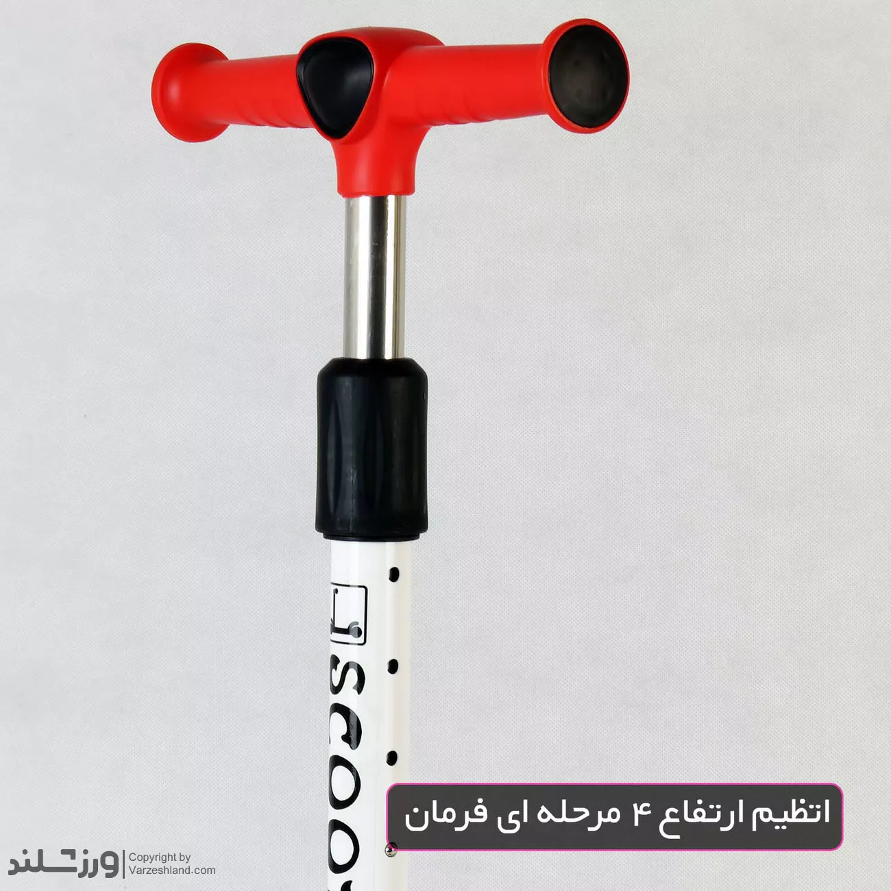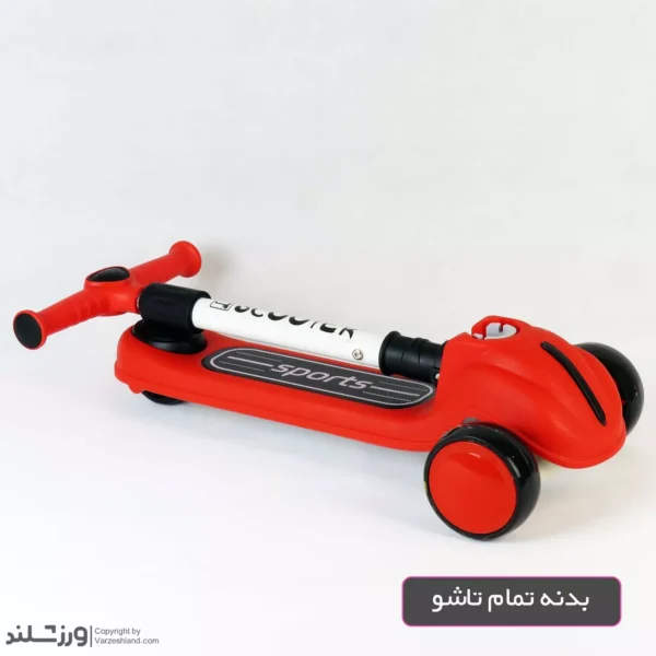 کفی ضدلغزش با طرح اسپرت باعث میشود کودک هنگام حرکت احساس ثبات بیشتری داشته باشد. همچنین این مدل مجهز به کیت موزیکال است که هنگام حرکت، موزیک شاد کودکانه پخش کرده و اسکوترسواری را جذابتر میکند. قابلیت تاشدن سریع نیز حمل و نگهداری اسکوتر را بسیار آسان کرده است.
