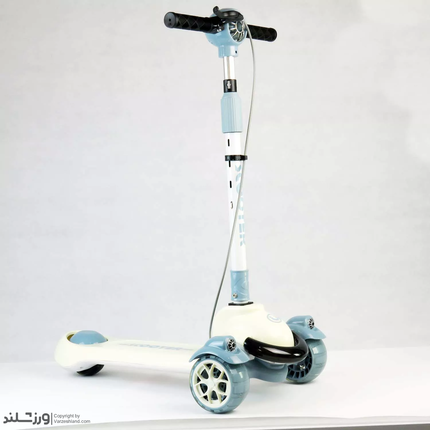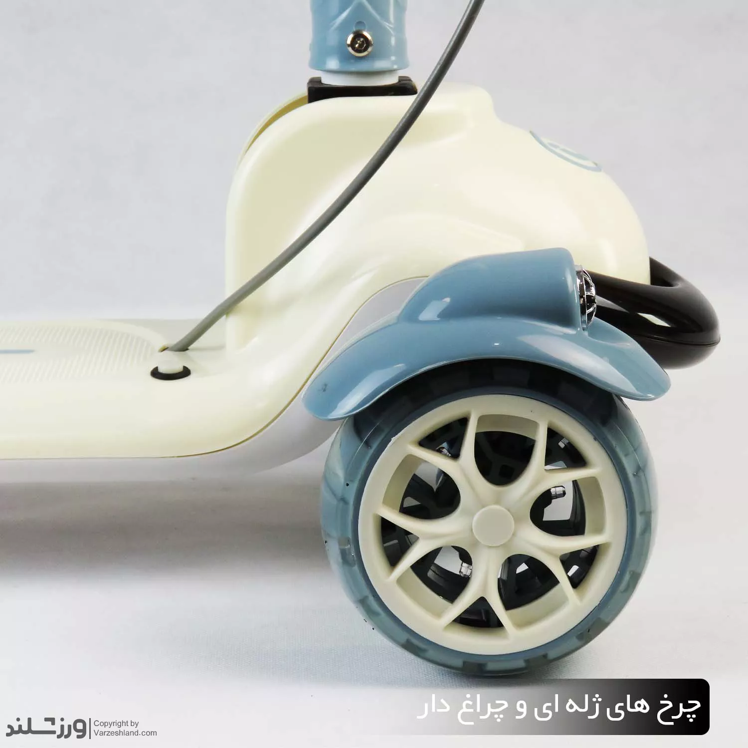در قسمت چرخها از چرخ های ژلهای (PU) با کیفیت بالا استفاده شده که در برخورد با زمین، لرزش و ضربه را کاهش میدهد. چرخ های جلو به صورت چراغدار هستند و هنگام حرکت، نورهای رنگی جذابی تولید میکنند؛ این ویژگی برای نوجوانان هیجان انگیز و سرگرم کننده است. از طرفی، وجود بلبرینگ های قوی حرکت اسکوتر را بسیار روان، بدون صدا و ایمن کرده است.