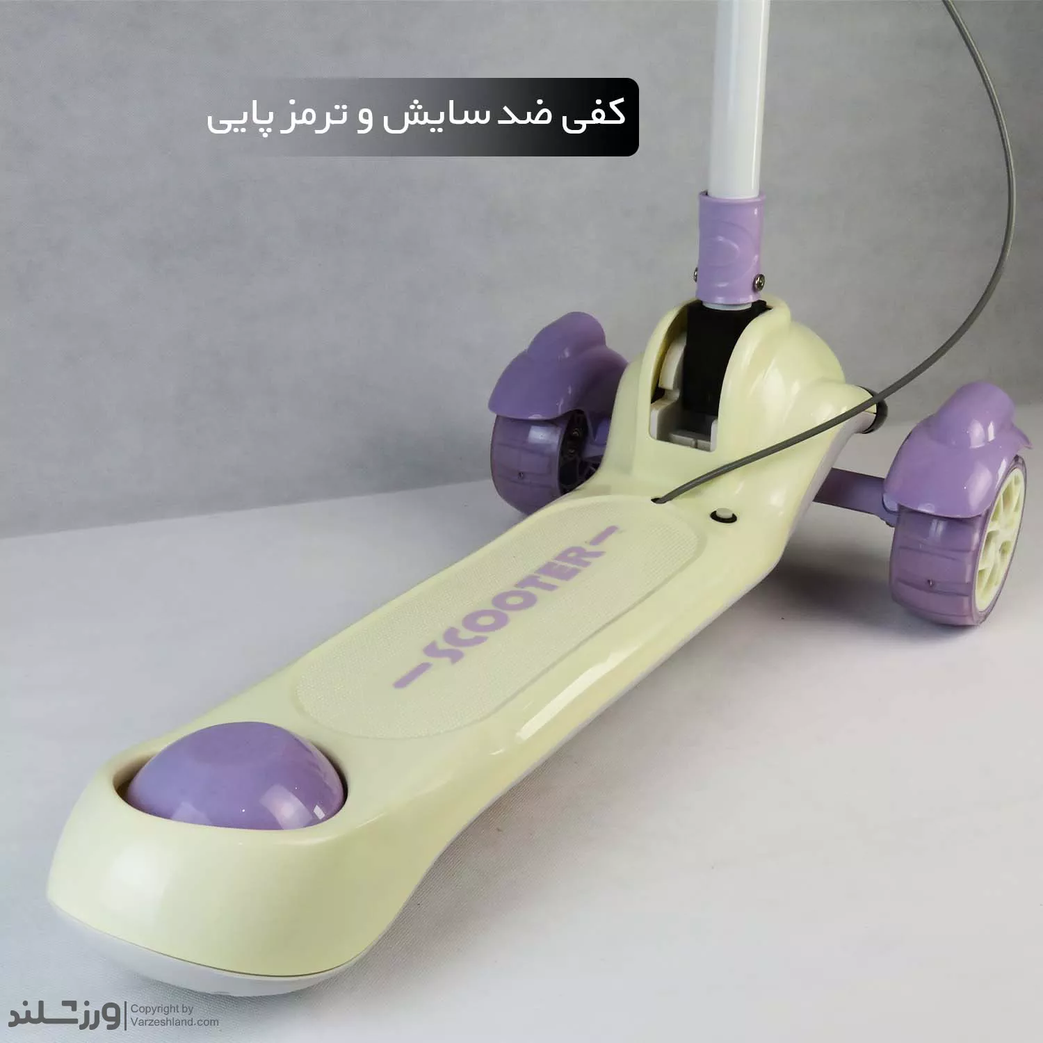 ترمز پایی در بخش عقب، استفاده از اسکوتر را کاملاً ایمن میکند و کودک با کمترین نیرو میتواند سرعت را کم کرده یا متوقف شود. طراحی سبک، ظاهری مدرن و دستههایی با پوشش نرم، این مدل را به گزینهای ایدهآل برای استفاده روزمره در خانه، پارک و فضای باز تبدیل کرده است.