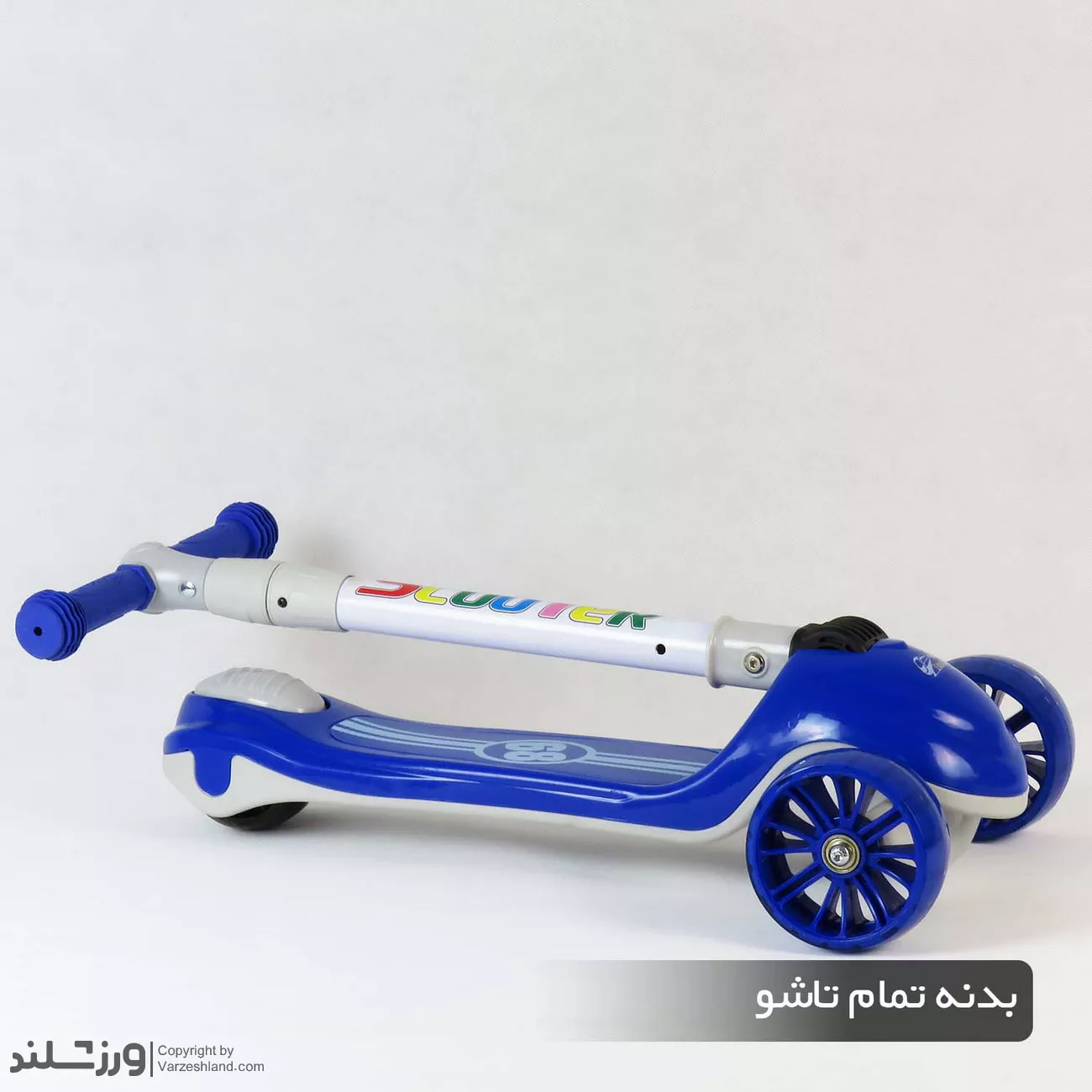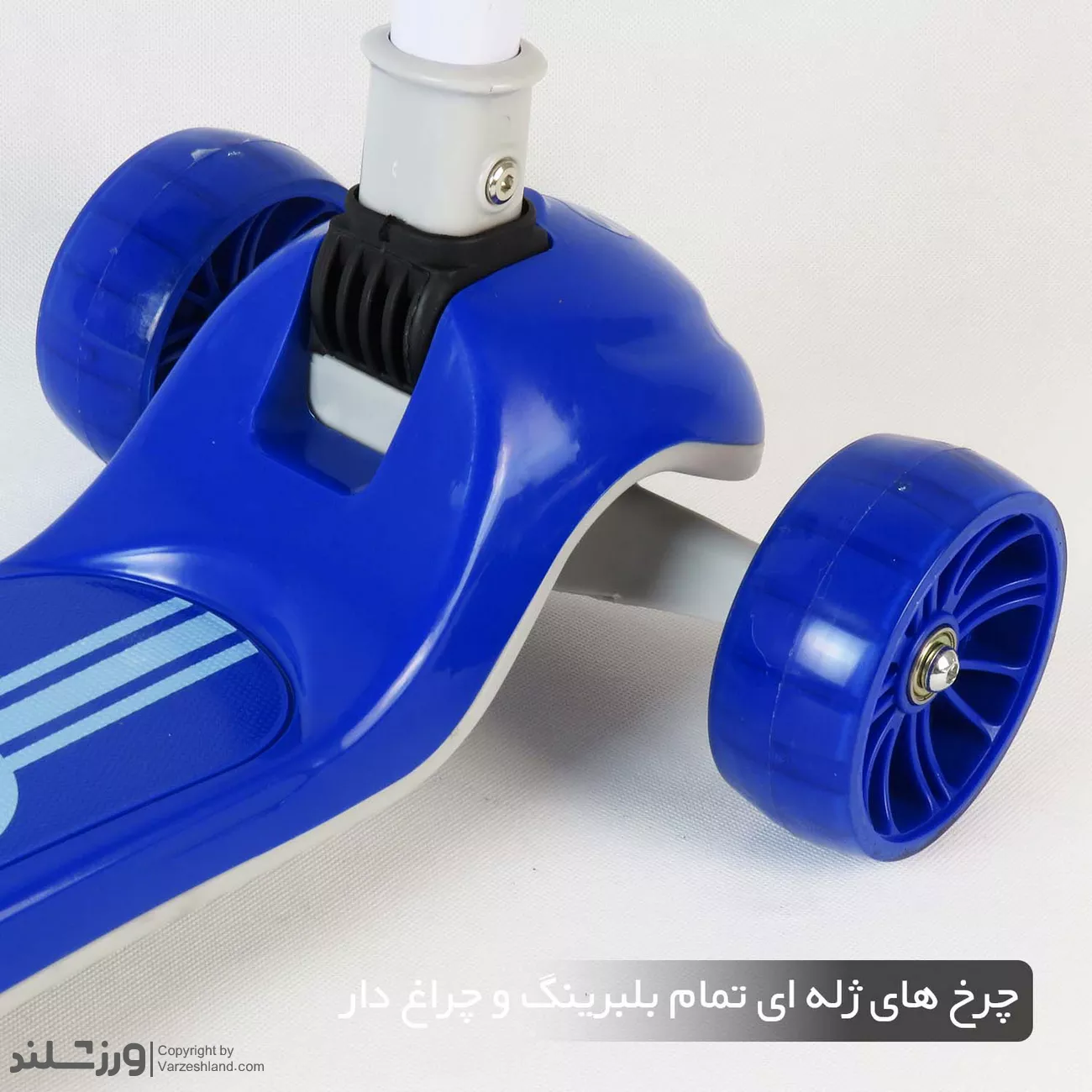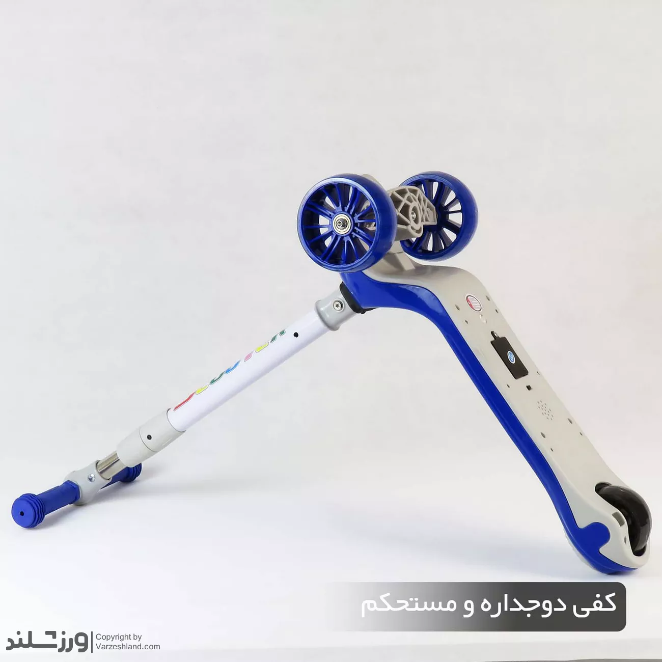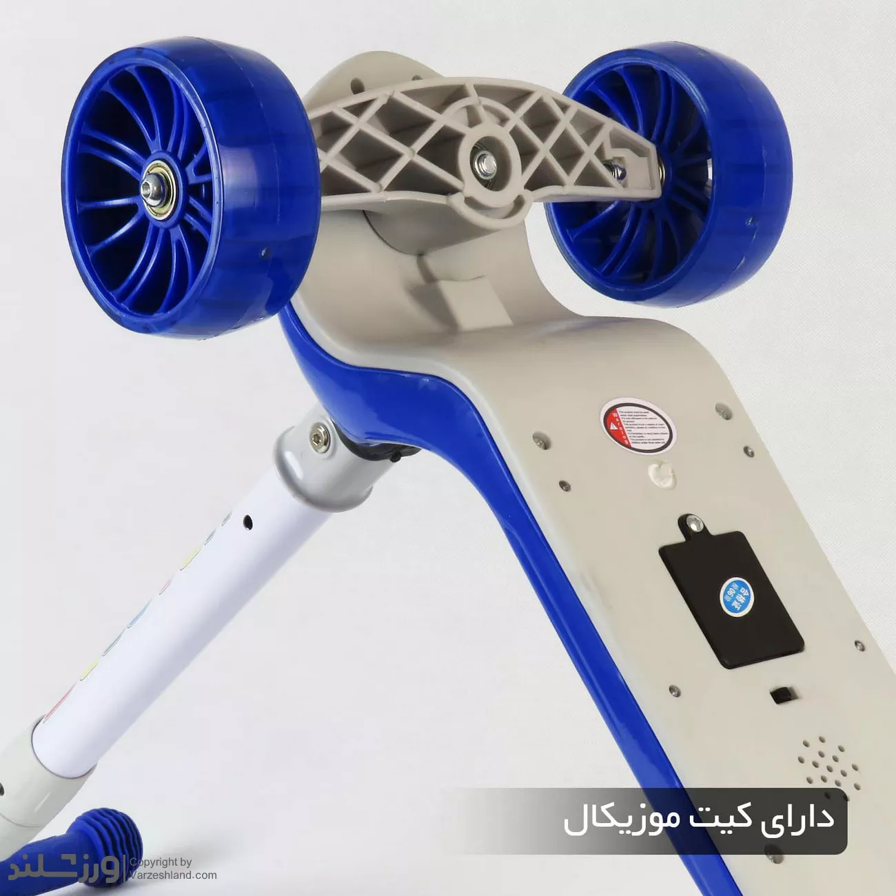 یکی از مزیت های بسیار ارزشمند این مدل، قابلیت تاشوندگی است. این ویژگی حمل اسکوتر را هنگام رفت و آمد، مسافرت یا قرار دادن داخل خودرو بسیار ساده میکند. همچنین این مدل مجهز به سیستم موزیکال است که حس هیجان و سرگرمی مضاعفی برای کودک ایجاد میکند.