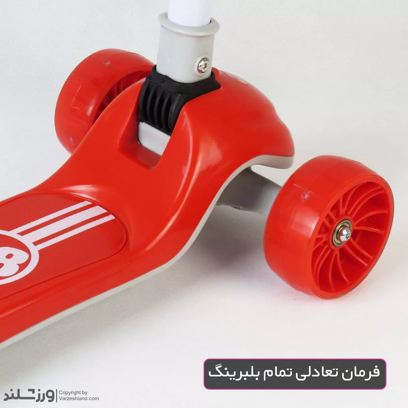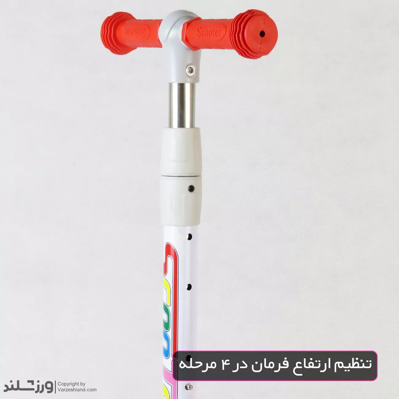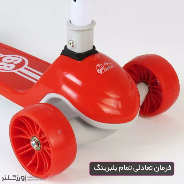 فرمان این اسکوتر قابلیت تنظیم در چهار ارتفاع مختلف دارد و امکان استفاده طولانی مدت و تطبیق با رشد کودک را فراهم میکند. دسته فرمان از پلاستیک ضدتعریق ساخته شده و طراحی ارگونومیک آن، کنترل آسان اسکوتر را برای کودک ممکن میسازد.