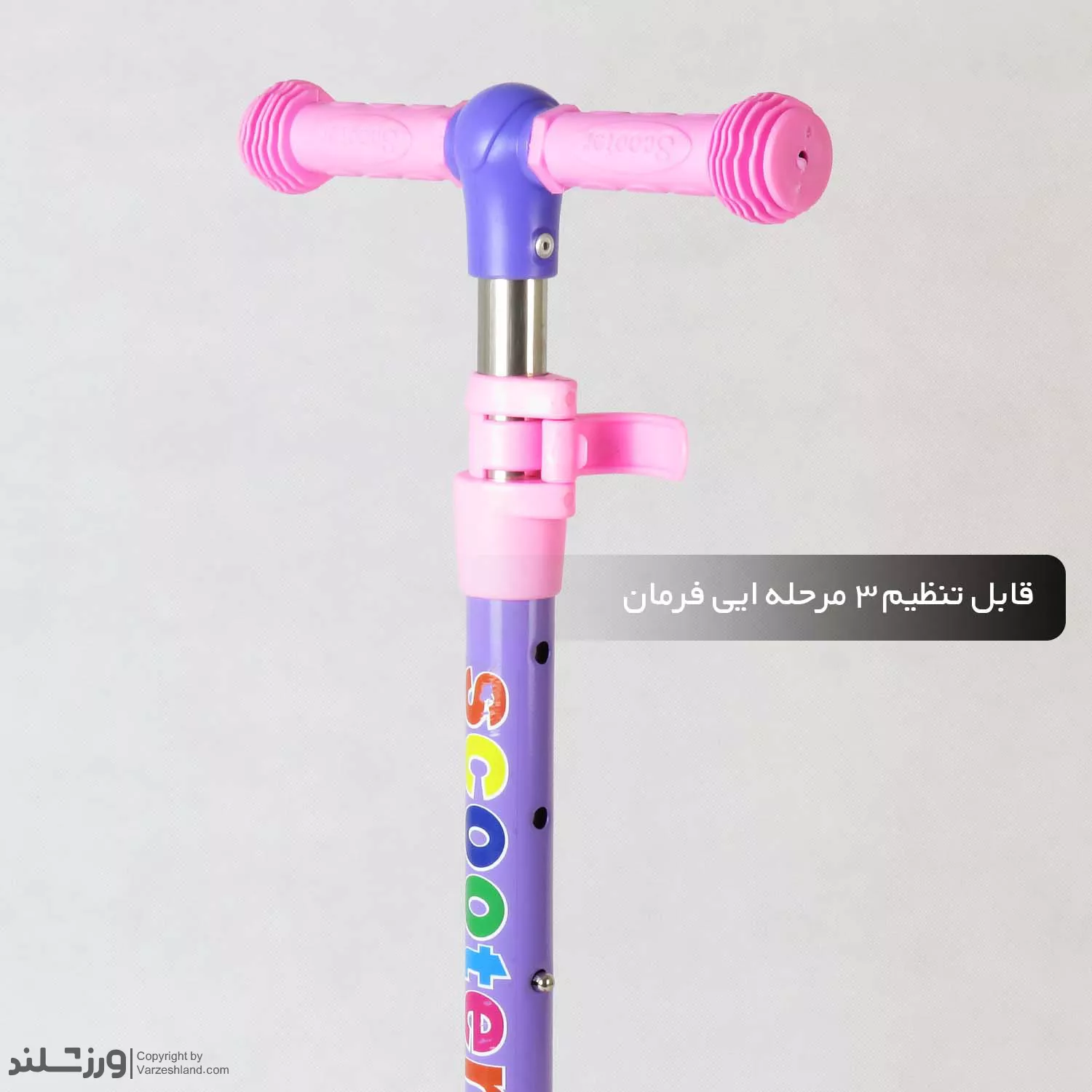 فرمان اسکوتر نیز قابلیت تنظیم ارتفاع دارد و در چند مرحله قابل تنظیم است. این ویژگی باعث می‌شود اسکوتر با قد کودک هماهنگ شود و بتوان از آن برای مدت طولانی‌تری استفاده کرد. دسته‌های فرمان نیز طراحی ارگونومیک و ضدلغزش دارند تا کودک کنترل بهتری هنگام حرکت داشته باشد.