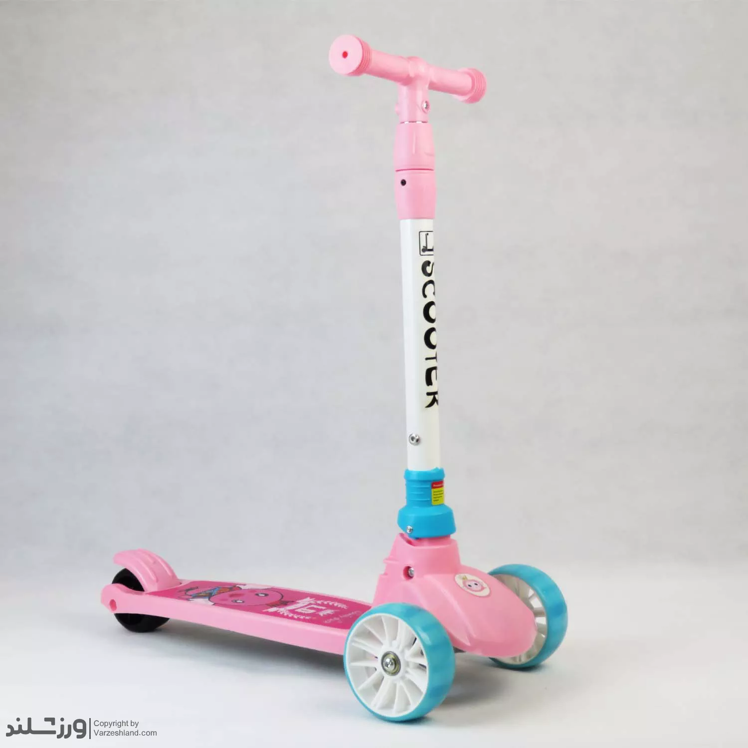 میله فرمان این اسکوتر از فلز مقاوم ساخته شده و در کنار بدنه پلاستیکی باکیفیت، استحکام مناسبی برای استفاده روزمره کودکان دارد. دسته‌های فرمان نیز به‌صورت ارگونومیک طراحی شده‌اند تا به راحتی در دست کودک قرار بگیرند و کنترل اسکوتر آسان‌تر شود.