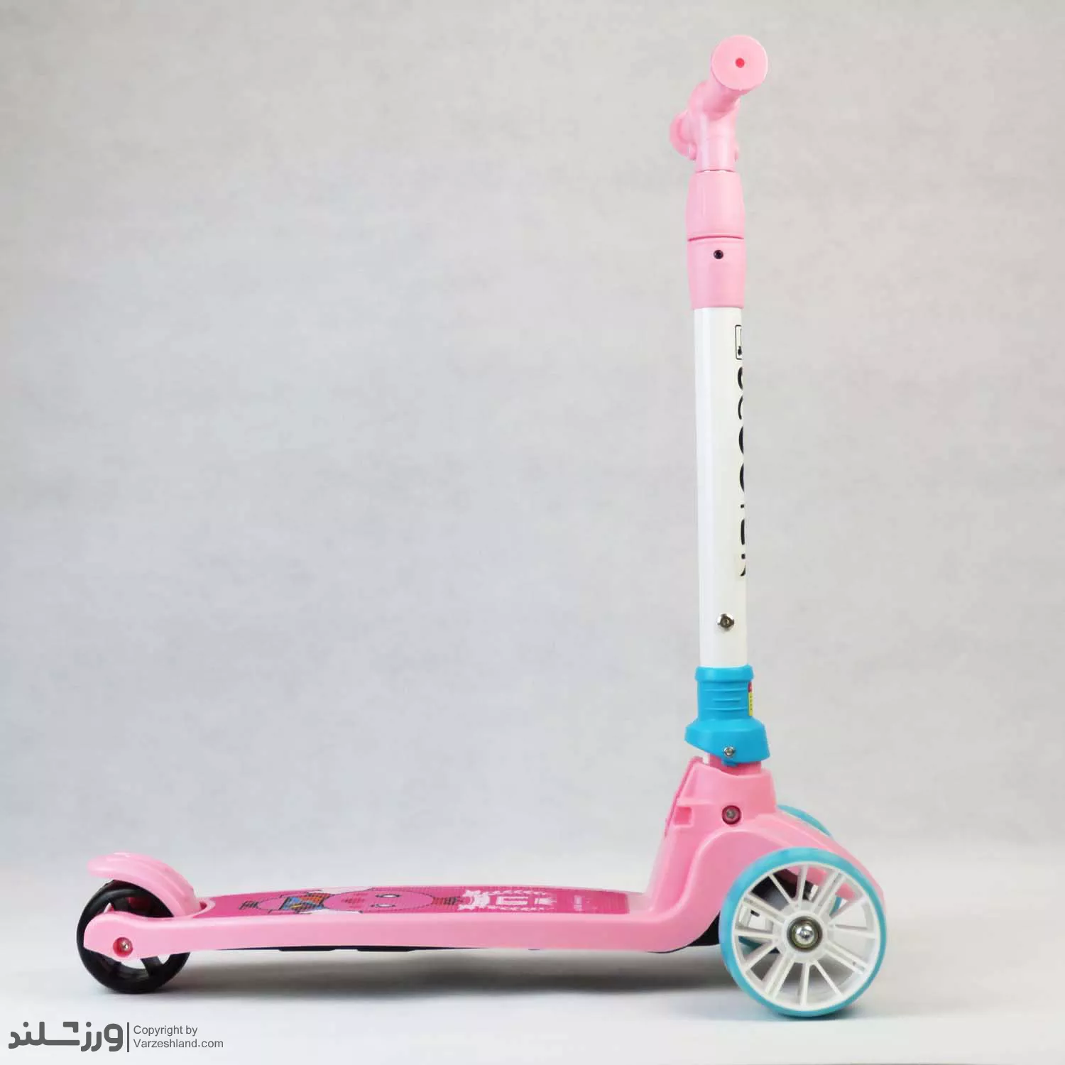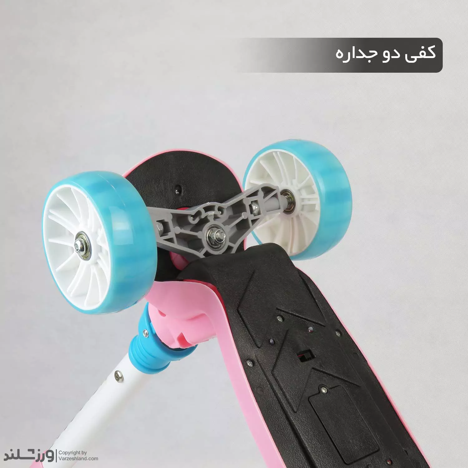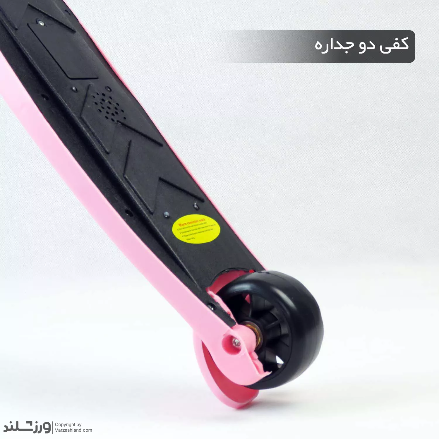 کفی اسکوتر کودک به صورت پهن و مستحکم طراحی شده تا کودک بتواند به راحتی هر دو پای خود را روی آن قرار دهد. سطح کفی دارای خاصیت ضدلغزش و ضدسایش است که ایمنی کودک را هنگام استفاده افزایش می‌دهد. علاوه بر این، چاپ کارتونی روی کفی جلوه‌ای جذاب به این محصول داده و آن را برای کودکان دوست‌داشتنی‌تر کرده است.