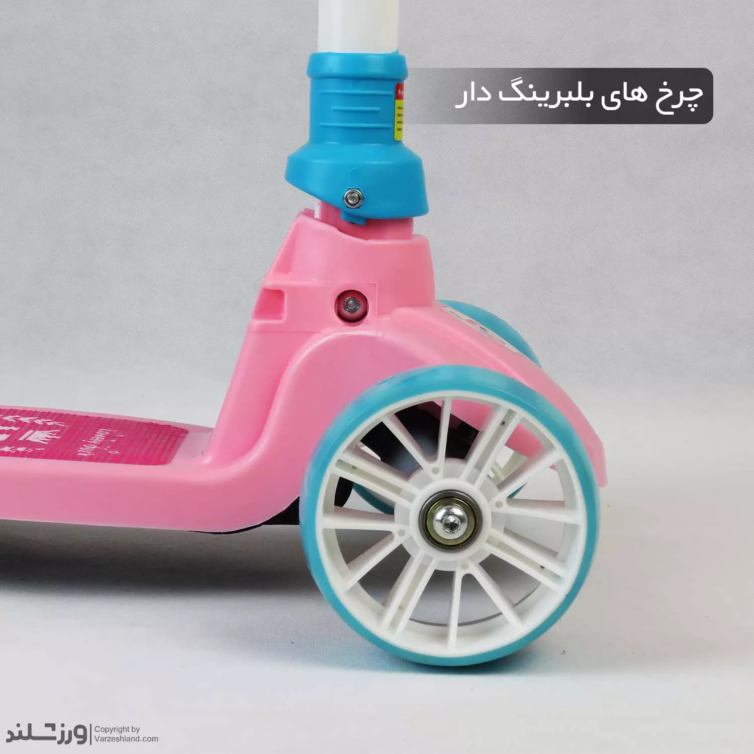 چرخ‌های این اسکوتر از جنس ژله‌ای مقاوم ساخته شده‌اند و به بلبرینگ‌های باکیفیت مجهز هستند. این ویژگی باعث حرکت نرم، روان و بی‌صدا روی سطوح مختلف می‌شود و تجربه‌ای لذت‌بخش از اسکوترسواری را برای کودک فراهم می‌کند. همچنین چرخ‌های بزرگ جلو باعث افزایش پایداری و کنترل بهتر هنگام حرکت می‌شوند.