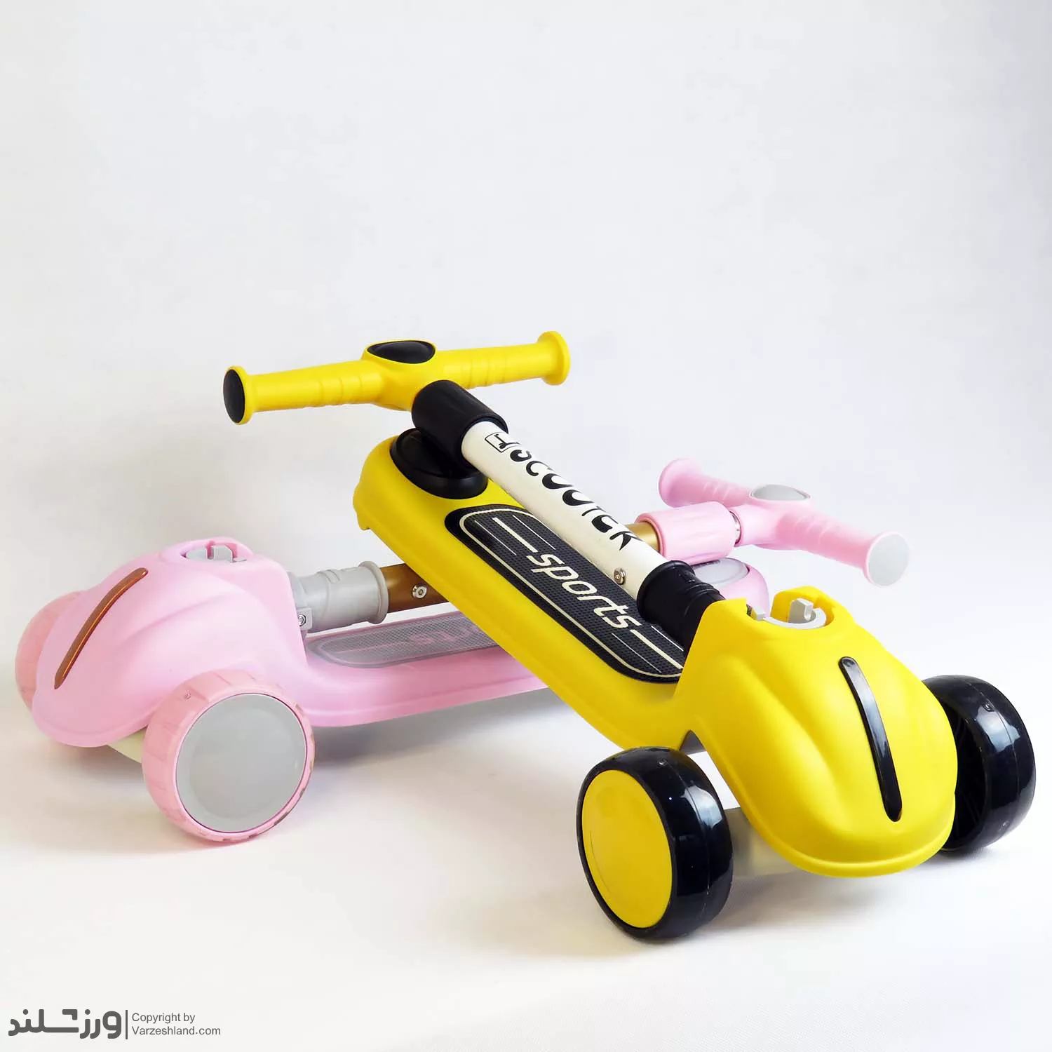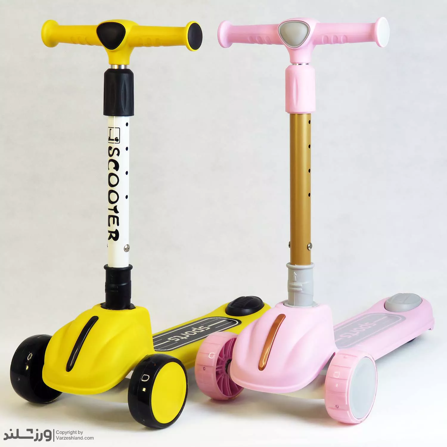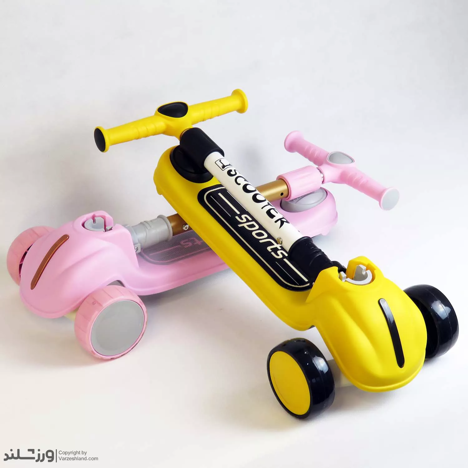اسکوتر Sports کد 1970 یک اسکوتر سه‌ چرخ مدل اسپرت در دو رنگ زرد و صورتی، ترکیبی از ایمنی، تعادل و طراحی شاد برای کودکان ۲ تا ۶ سال. بدنه مقاوم ABS، چرخ‌های نرم PU، فرمان تعادلی و ترمز پایی ایمن باعث می‌شوند کودک با لذت و امنیت کامل بازی کند. سبک، بادوام و قابل تنظیم در ارتفاع—انتخابی عالی برای هدیه تولد و تشویق به تحرک و ورزش روزانه.