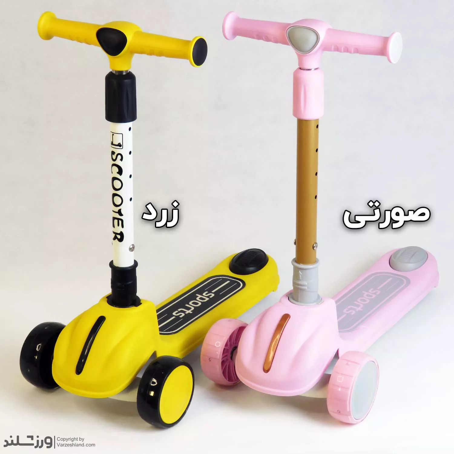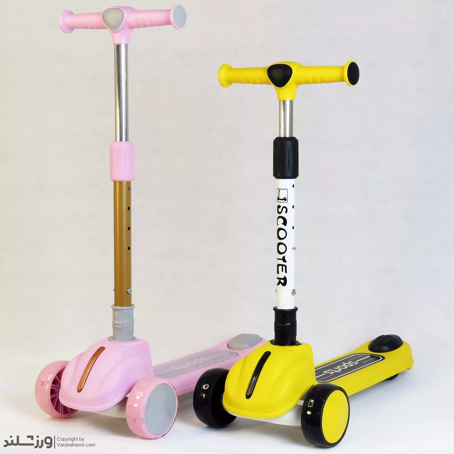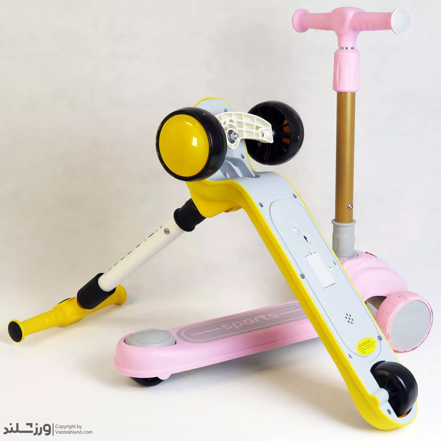اسکوتر Sports کد 1970 یک اسکوتر سه‌ چرخ مدل اسپرت در دو رنگ زرد و صورتی، ترکیبی از ایمنی، تعادل و طراحی شاد برای کودکان ۲ تا ۶ سال. بدنه مقاوم ABS، چرخ‌های نرم PU، فرمان تعادلی و ترمز پایی ایمن باعث می‌شوند کودک با لذت و امنیت کامل بازی کند. سبک، بادوام و قابل تنظیم در ارتفاع—انتخابی عالی برای هدیه تولد و تشویق به تحرک و ورزش روزانه.