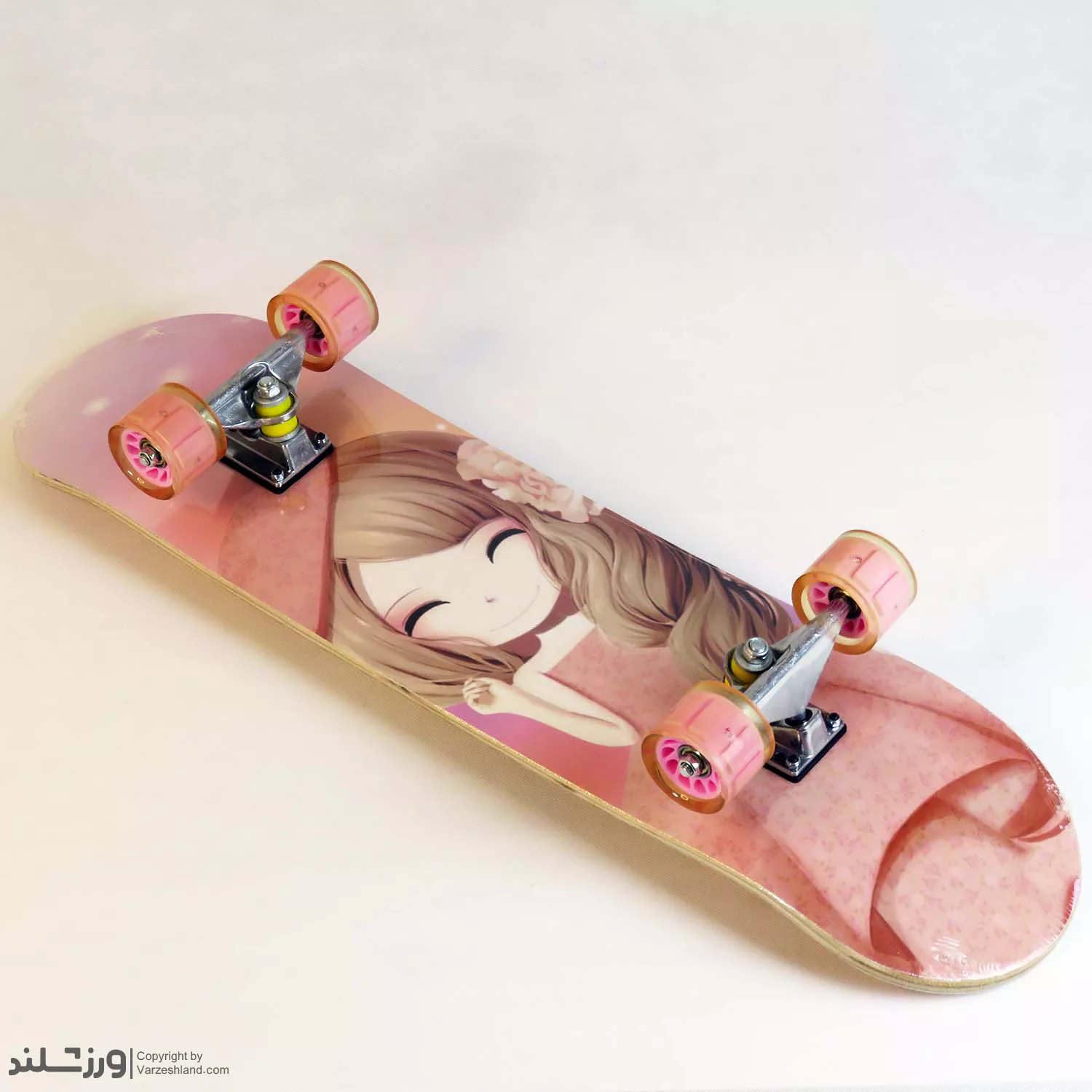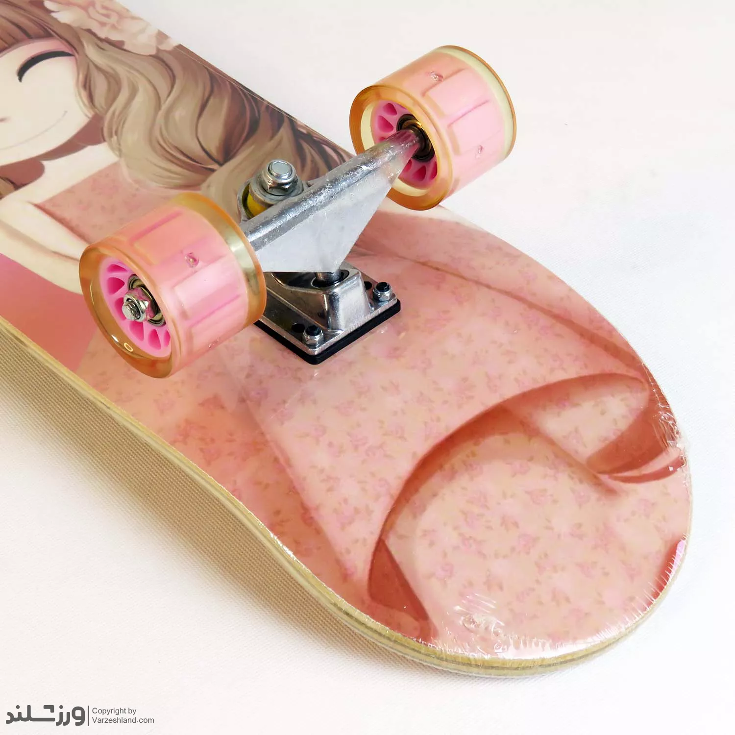 - طراحی منحصر به فرد: تصویر انیمهای دخترانه با تم صورتی، جلوهای خاص به اسکیتبرد شما میبخشد.