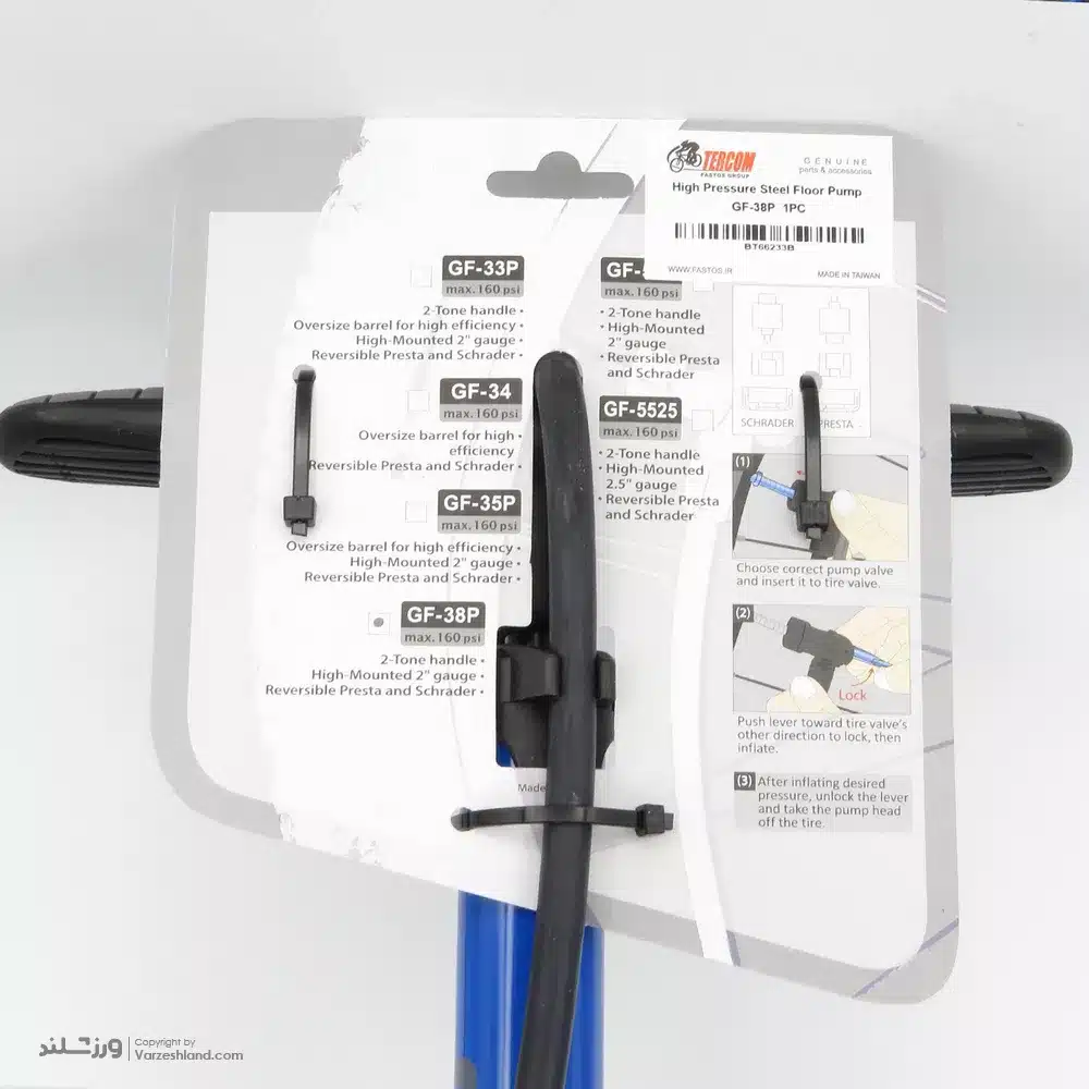 تلمبه زمینی بزرگ تایوان جیو کد 1437، تلمبهای بادوام و با پایه پایدار برای باد کردن سریع لاستیک دوچرخه، موتور و خودرو با طراحی ارگونومیک. خرید از فروشگاه ورزشلند.