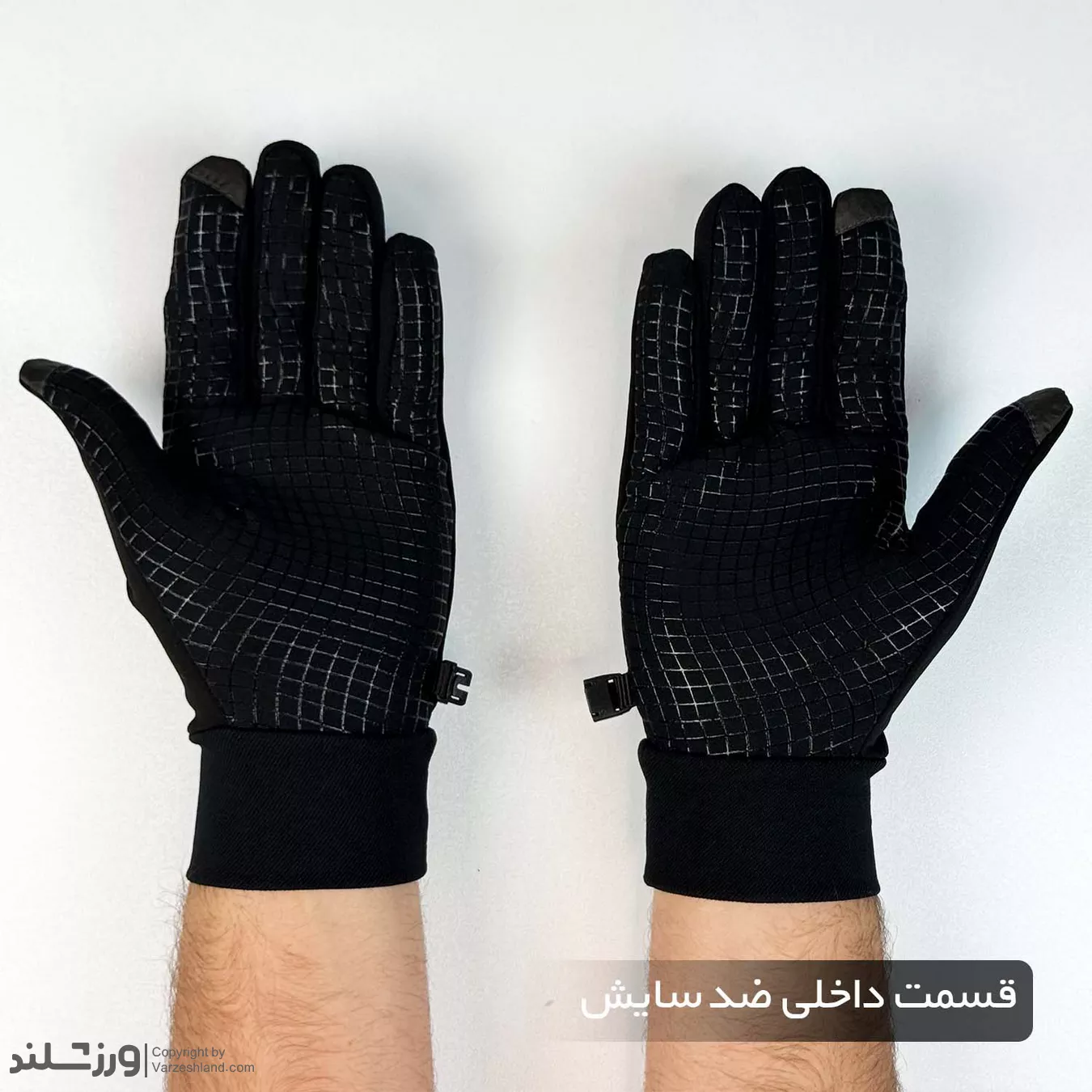 بدنه اصلی دستکش بیس از پارچه بیسلاین/پولار باکیفیت ساخته شده که علاوه بر ایجاد گرمایش مناسب، نرمی و انعطافپذیری بالایی دارد. این ساختار باعث میشود دستکش بهخوبی روی دست بنشیند و هنگام حرکت انگشتان، هیچگونه خشکی یا محدودیت ایجاد نکند. در بخش داخلی کف دست و انگشتها، از الگوی سیلیکونی ضد لغزش استفاده شده که کنترل بیشتری هنگام گرفتن موبایل، فرمان خودرو، دسته دوچرخه و سایر اشیاء به کاربر میدهد. این ویژگی در کنار مقاومت بالای آن در برابر سایش، عمر دستکش را به شکل قابلتوجهی افزایش میدهد.