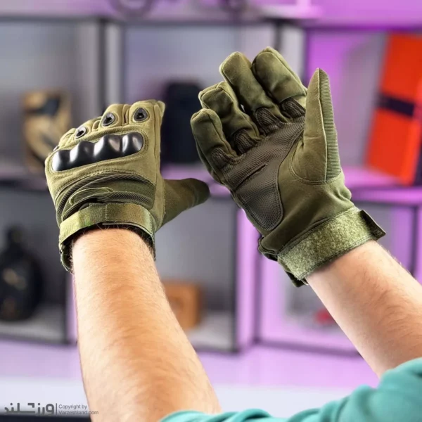 از نظر طراحی ظاهری، این محصول در دو رنگ مشکی و سبز ارتشی (Army Green) عرضه میشود؛ هر دو رنگ جلوه ای حرفهای و جذاب دارند و با سبک ورزشی یا تاکتیکال کاملاً هماهنگ هستند. ترکیب بافتهای مختلف، خطوط تقویتی و طراحی ارگونومیک انگشتان، ظاهر این محصول را بسیار حرفه ای و شبیه نسخه اصلی اوکلی کرده است. فروشگاه ورزشلند تمامی این دستکشها را با کیفیت درجه یک و تضمین اصالت ارائه میدهد تا با خیال راحت خرید کنید.