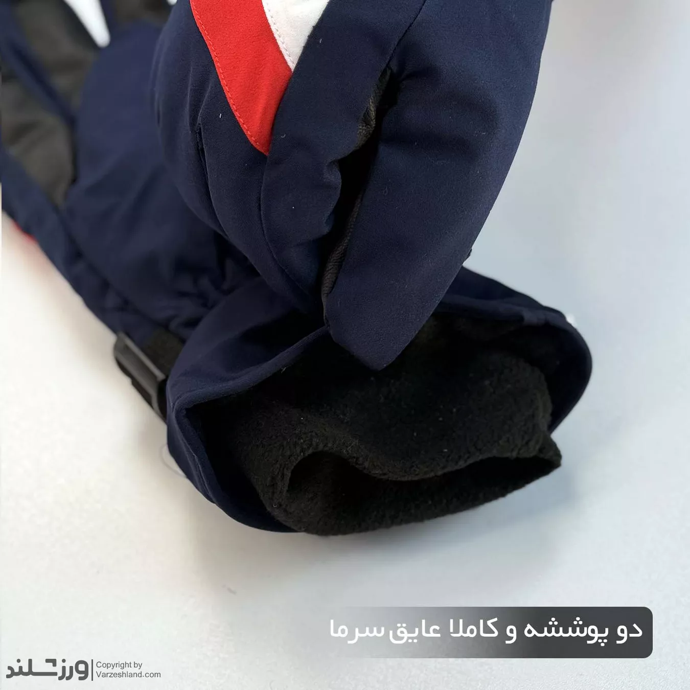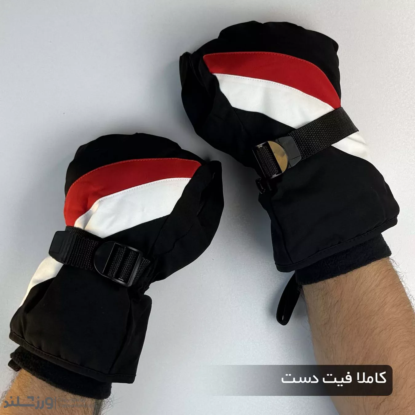 بخش مچ دستکش نیز با سیستم رگلاژ قابل تنظیم تقویت شده است. وجود بند رگلاژی با سگک محکم کمک میکند دستکش دوپوش زمستانی کاملاً مطابق اندازه مچ بسته شود و هیچ منافذ بازی برای نفوذ باد وجود نداشته باشد. علاوه بر آن، کش داخلی مخفی نیز باعث میشود دستکش روی مچ فیکس بماند و حرکت نکند. این طراحی، دستکش را برای استفاده طولانیمدت بسیار راحت و مطمئن میکند.