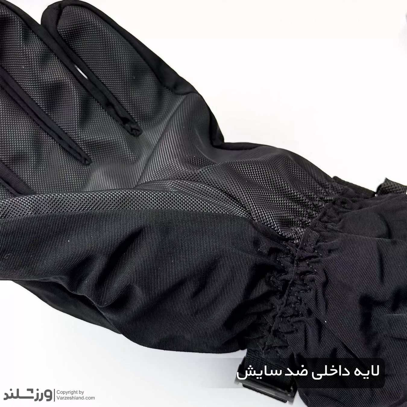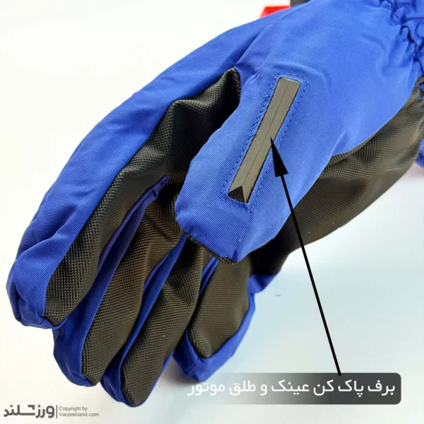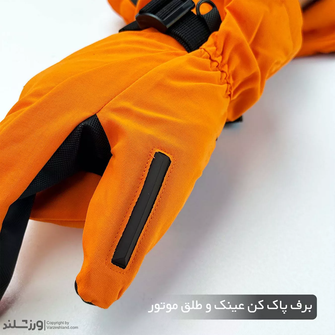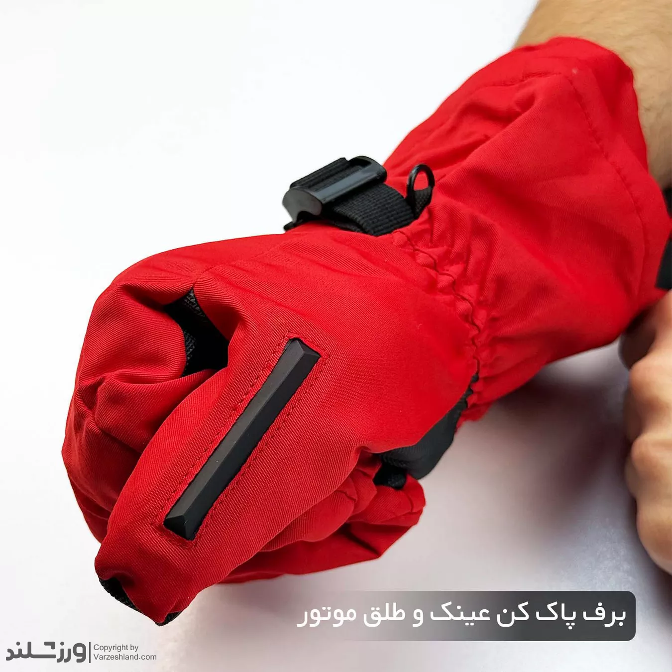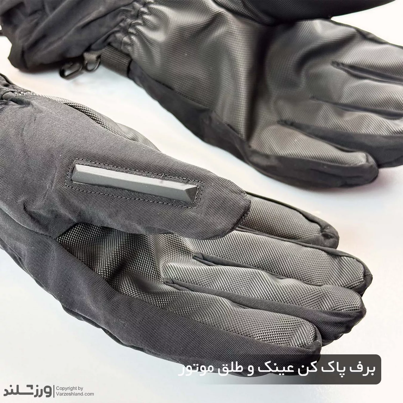بخش کف و انگشتان با لایه ای مقاوم در برابر سایش تقویت شده تا در استفادههای حرفهای مانند اسکی، کوهنوردی، طبیعت گردی و حتی موتورسواری دوام بالایی داشته باشد. نکته جالب توجه دیگر وجود نوار پاککن مخصوص روی انگشت است که برای پاک کردن طلق کلاه موتور یا عینک اسکی کاربرد بسیار عملی دارد.