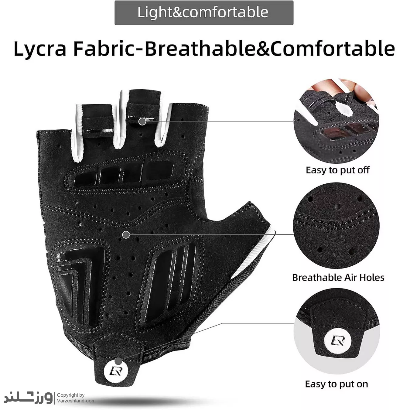 ✔️ طراحی نیم انگشتی: باعث هواداری بهتر و حرکت آزاد انگشتان هنگام رکاب زدن میشود و در عین حال کف دست را محافظت میکند.
