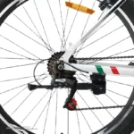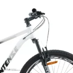 از نظر سیستم تعلیق، این دوچرخه مجهز به دوشاخه فنردار با قابلیت قفل (Lockout) و تنظیم فشار (Preload) است. این ویژگی به شما اجازه می‌دهد تا بسته به نوع مسیر (آسفالت یا خاکی) فنر جلو را تنظیم یا قفل کنید. در مسیرهای ناهموار، باز بودن دوشاخ باعث جذب ضربات می‌شود و در مسیرهای صاف، قفل کردن آن موجب افزایش سرعت و کنترل بهتر خواهد شد.