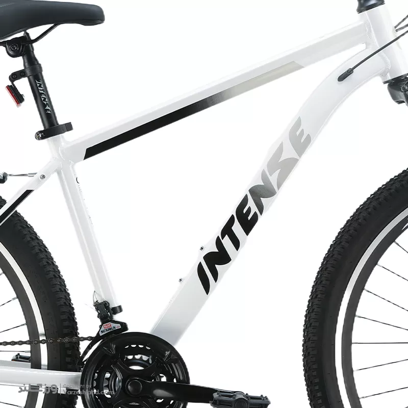 فریم این دوچرخه اینتنس از جنس آلیاژ آلومینیوم 6061 ساخته شده که همزمان وزن پایین و مقاومت بالا دارد. طراحی فریم به‌ صورت Internal Cable Routing است؛ یعنی کابل‌ های ترمز و دنده داخل فریم عبور داده شده‌اند تا دوچرخه ظاهری تمیز تر و مدرن‌ تر داشته باشد و سیم‌ها در برابر ضربه یا گردوغبار محافظت شوند. این ساختار نه‌ تنها ظاهر حرفه‌ ای‌ تری به دوچرخه می‌دهد، بلکه دوام سیستم سیم‌ کشی را نیز افزایش می‌دهد.