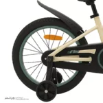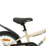 بدنه این دوچرخه از آهن مقاوم و مستحکم ساخته شده تا تحمل استفاده روزانه، مسیرهای ناهموار و بازیهای پرتحرک کودکان را داشته باشد. پوشش رنگی کرم مات، علاوه بر ظاهر زیبا، در برابر خط و خش مقاوم بوده و باعث میشود دوچرخه همیشه نو و جذاب به نظر برسد. وزن مناسب و طراحی ارگونومیک آن نیز کمک میکند کودک بتواند بهراحتی کنترل دوچرخه را در دست بگیرد و تجربهای دلپذیر از دوچرخهسواری داشته باشد.