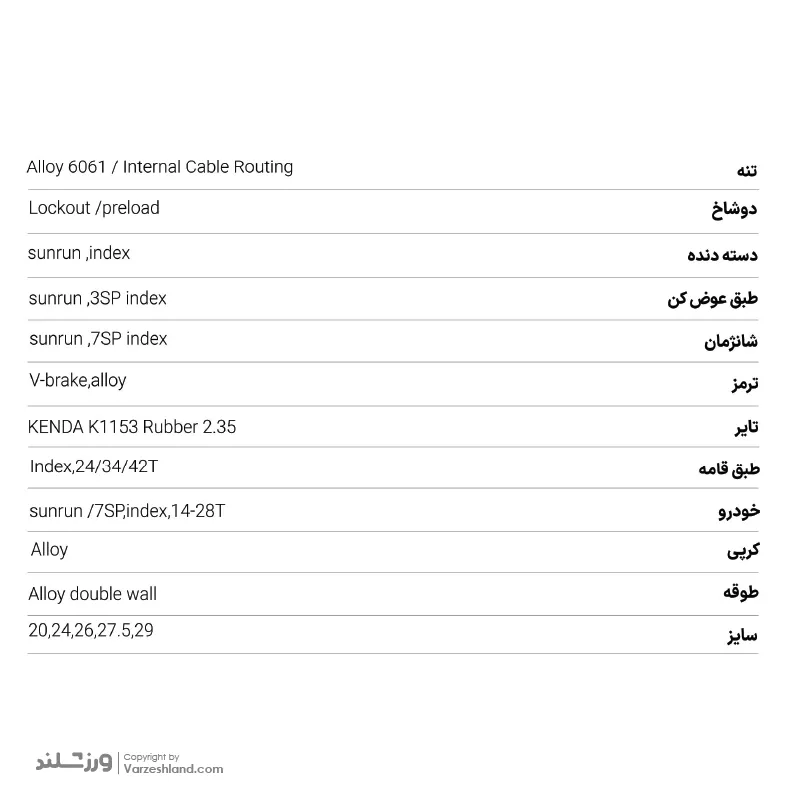 طوقههای آلومینیومی دو جداره (Double Wall) در کنار کرپی و قطعات باکیفیت، دوام بالایی به دوچرخه دادهاند. این مدل در سایز چرخ 29 اینچ ارائه میشود که مناسب برای عبور راحتتر از موانع و افزایش سرعت در مسیرهای صاف است.