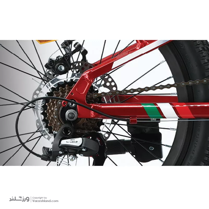 در بخش دنده و انتقال قدرت، شاهد استفاده از برند Sunrun هستیم. این دوچرخه دارای سیستم 21 سرعته (3 طبق جلو + 7 خودرو عقب) با عملکرد دقیق Index است. این سیستم تعویض دنده نرم و روانی را حتی در مسیرهای پرشیب تضمین میکند.