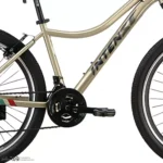 سایز ۲۶ آن برای بزرگسالان و نوجوانان گزینه ای ایده آل است. طراحی فریم با خط خمیده و رنگ خاص طلایی باعث شده این مدل جلوهای شیک و اسپرت داشته باشد و برای بانوان و آقایان جذاب باشد.