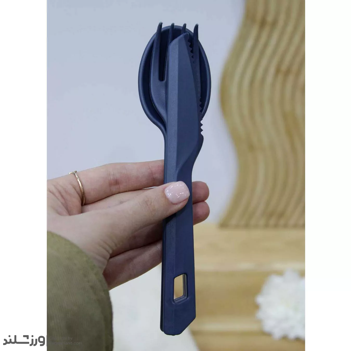 این محصول شامل یک قاشق، یک چنگال و یک کارد است که توسط حلقه اتصال به صورت منظم کنار هم نگه داشته میشوند و از گمشدن قطعات جلوگیری میکند. بستهبندی کارتدار آویزی نیز حمل و نگهداری آن را آسانتر کرده و برای فروشگاه ها ظاهری مرتب و جذاب ایجاد میکند.