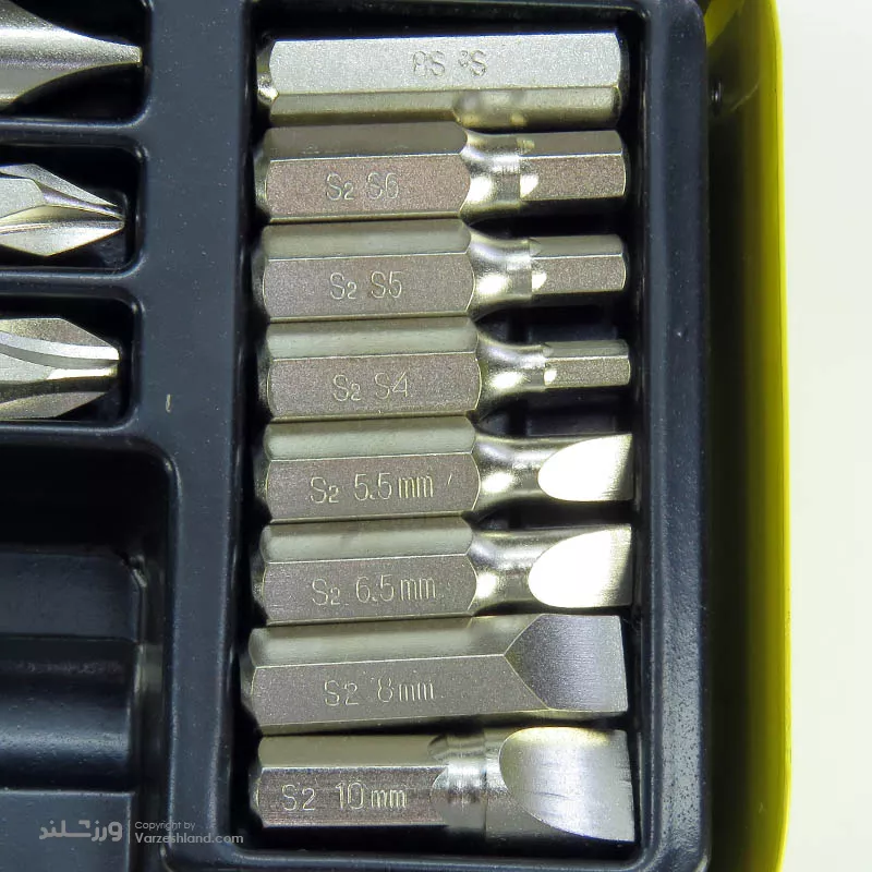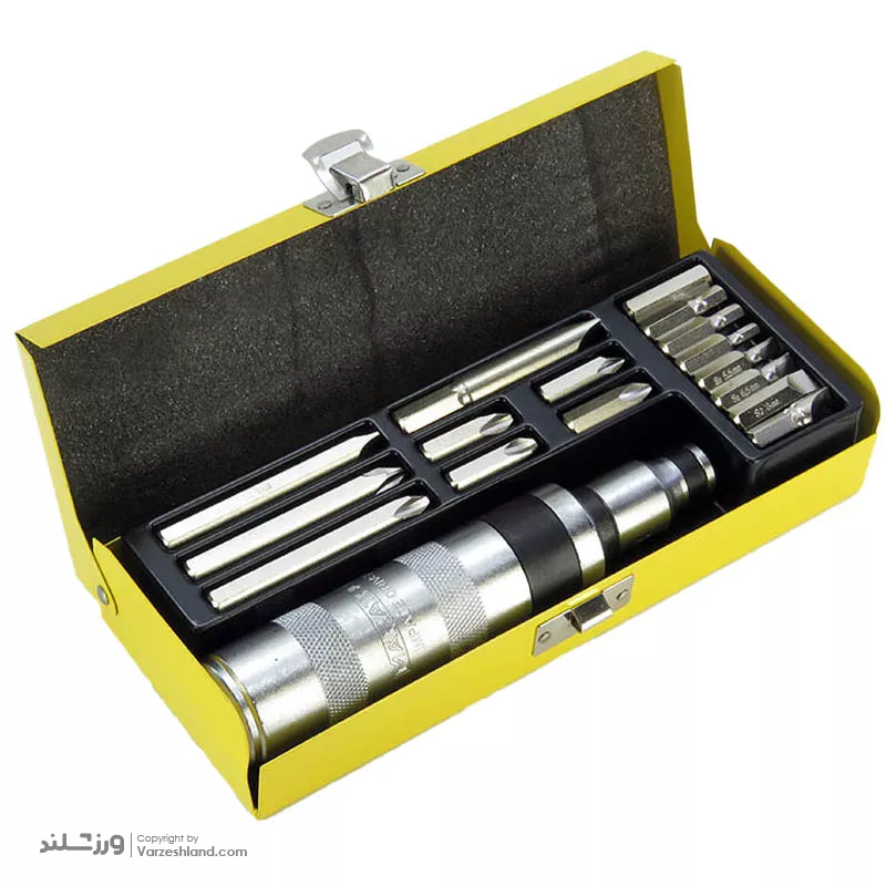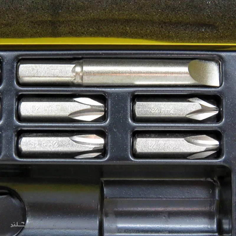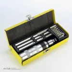 یکی از ویژگی‌های مهم این مجموعه، جعبه فلزی زرد رنگ آن است که علاوه بر ظاهر جذاب، مقاومت بالایی در برابر ضربه و فشار دارد. این جعبه باعث می‌شود تمامی قطعات در جای خود ثابت بمانند و حمل و نقل ابزار بدون دردسر انجام گیرد. علاوه بر این، وجود فوم داخلی، از آسیب‌دیدگی سری‌ها و بدنه اصلی جلوگیری می‌کند.
