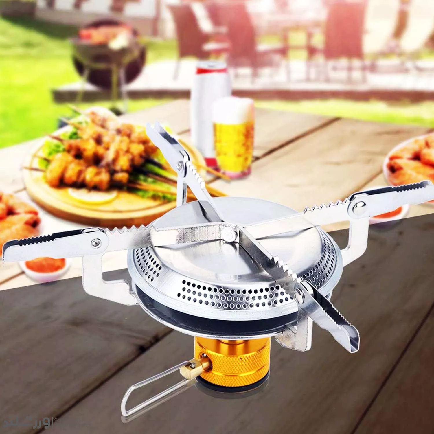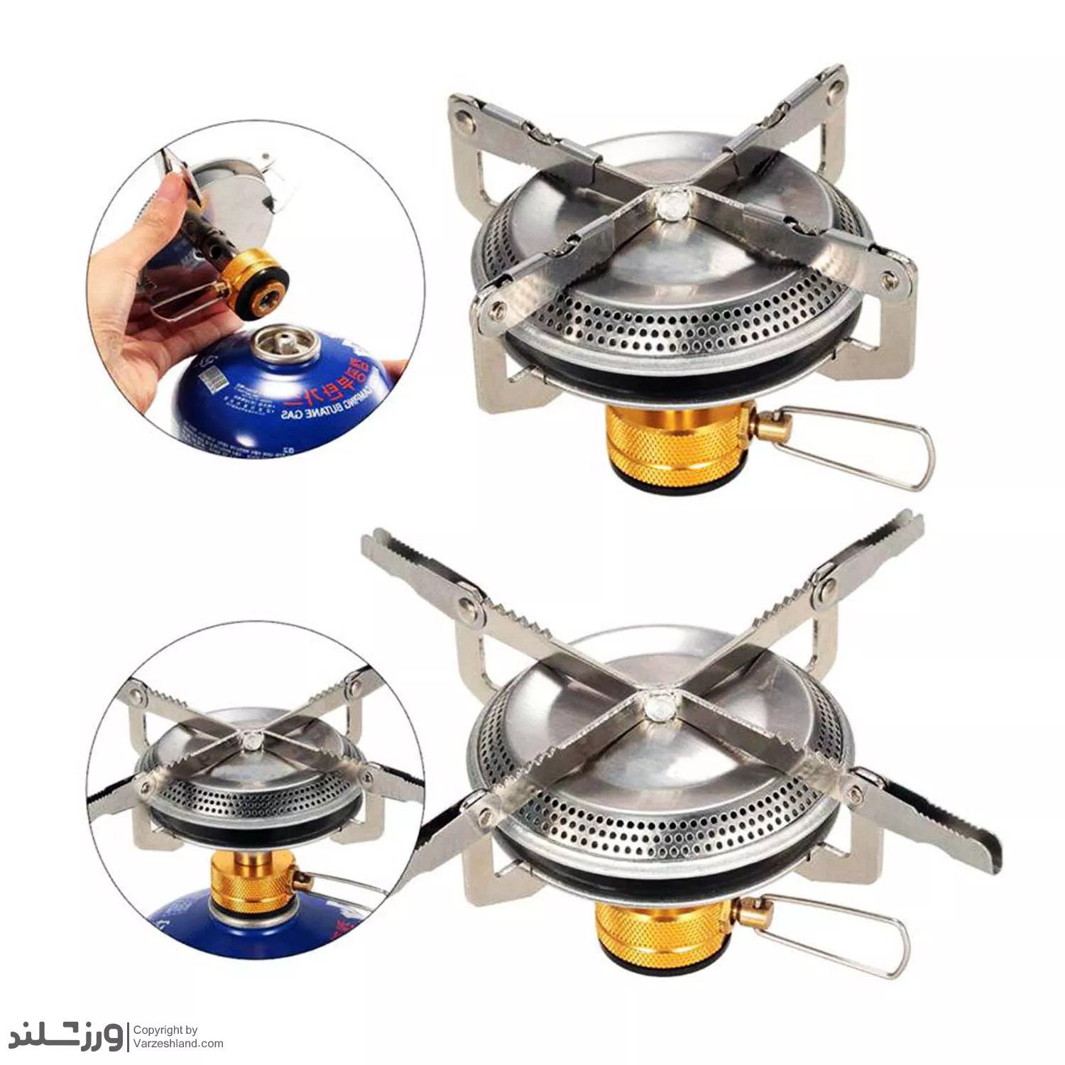 این سرشعله دارای پایه پخش فلزی در چهار جهت اصلی است که شما میتوانید پس از استفاده از این سرشعله، پایه های پخش را جمع کرده و قسمت پایینی را از بشقاب سرشعله جدا کرده و در ابعادی کوچک در کیف یا ساک خود حمل کنید.