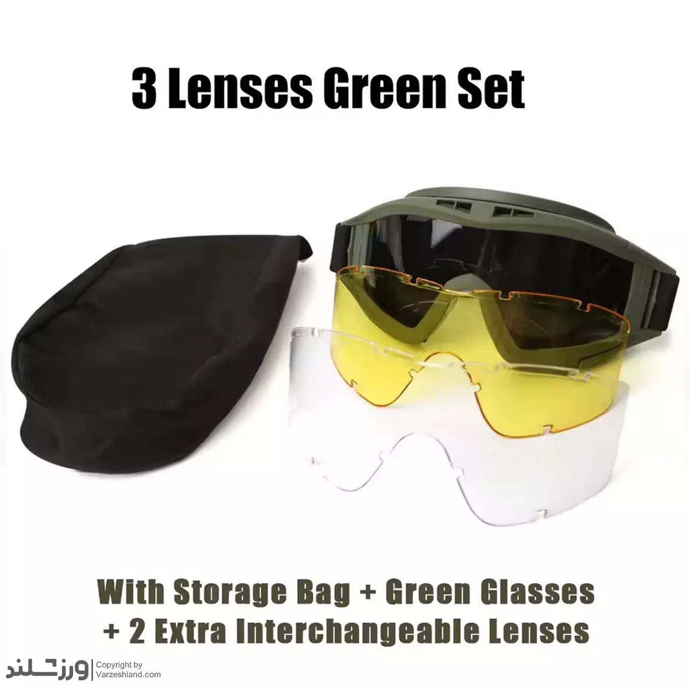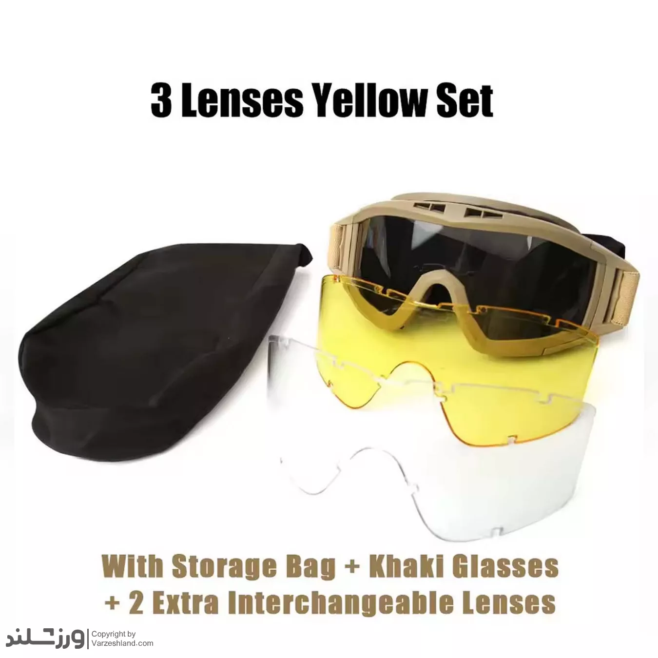 🥽 مشخصات عینک طوفان تاکتیکال 3لنزه کد 2138