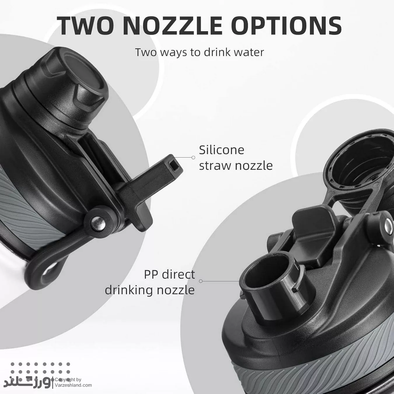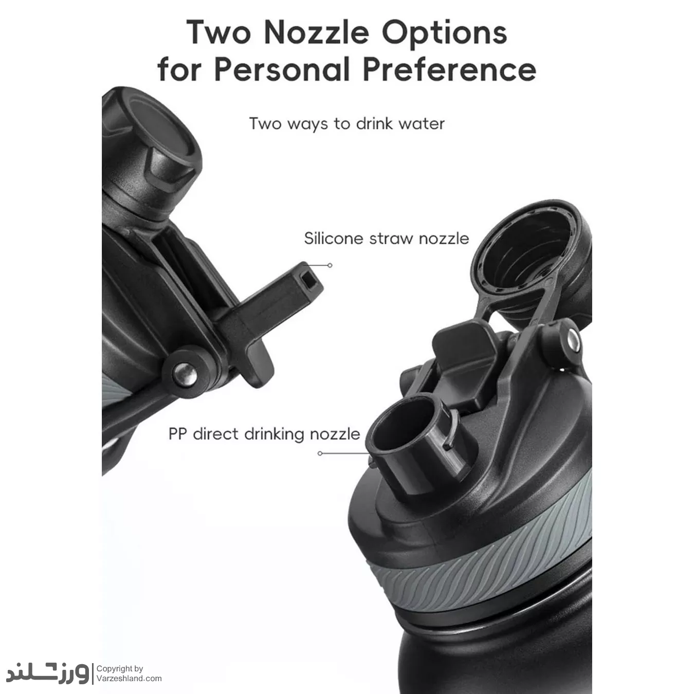 درپوش بطری دارای سوراخ برای نی و دهانه آسان برای نوشیدن است، همچنین امکان باز کردن کامل درپوش برای شستشو و پر کردن مجدد وجود دارد. این انعطاف‌ پذیری باعث می‌شود بطری به راحتی با نیازهای شما سازگار شود.