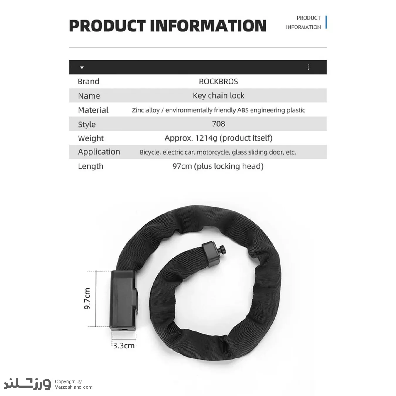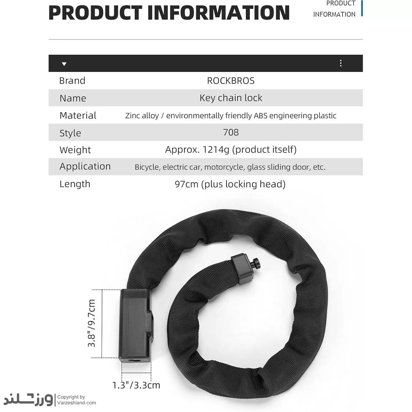 📌 نام محصول: RockBros Bicycle Chain Lock (قفل زنجیری ضد برش راک براس کد 2066)